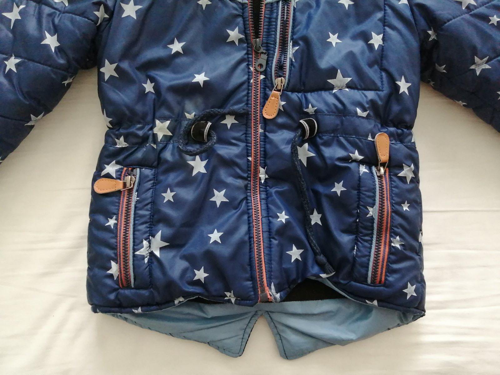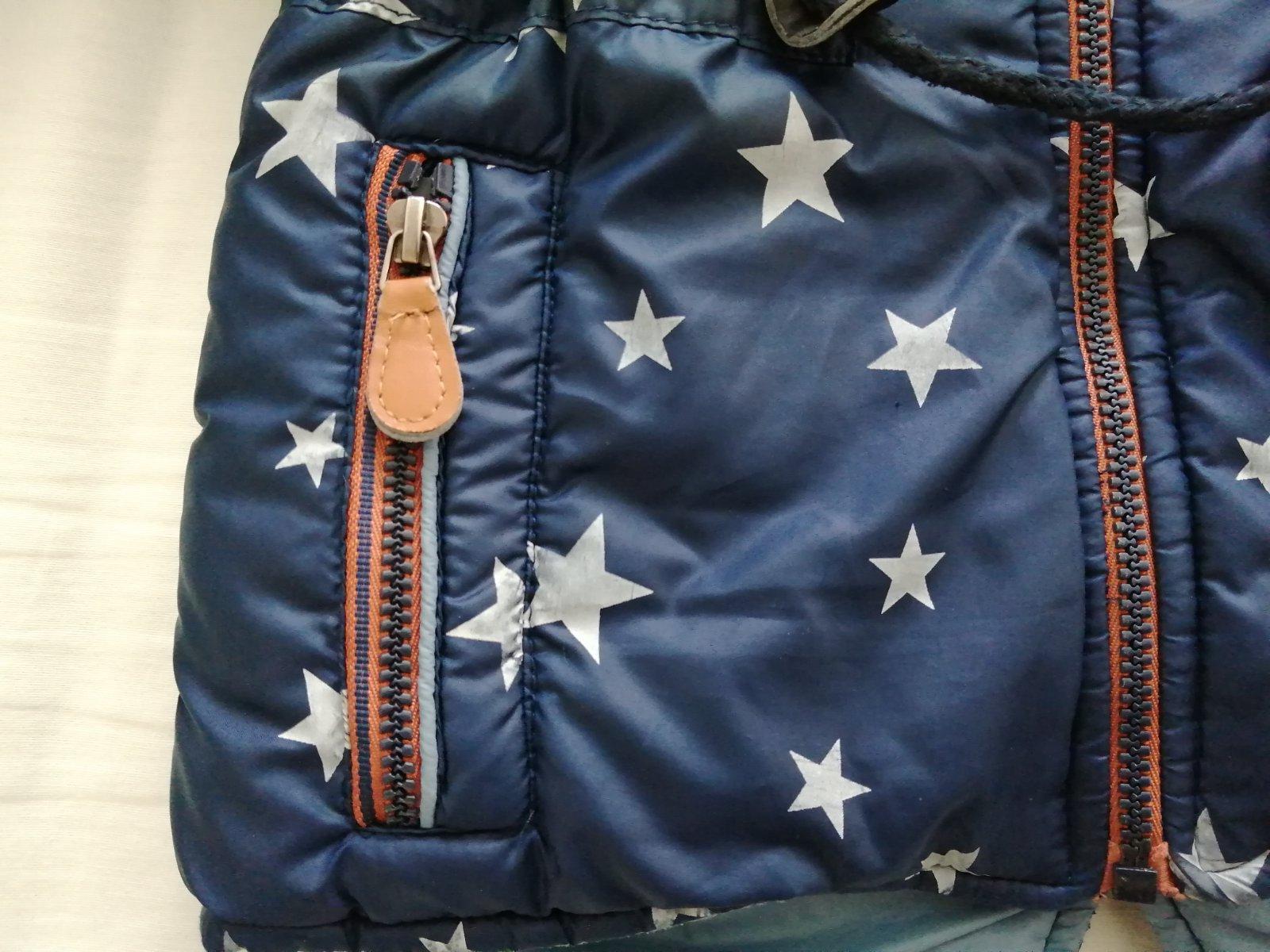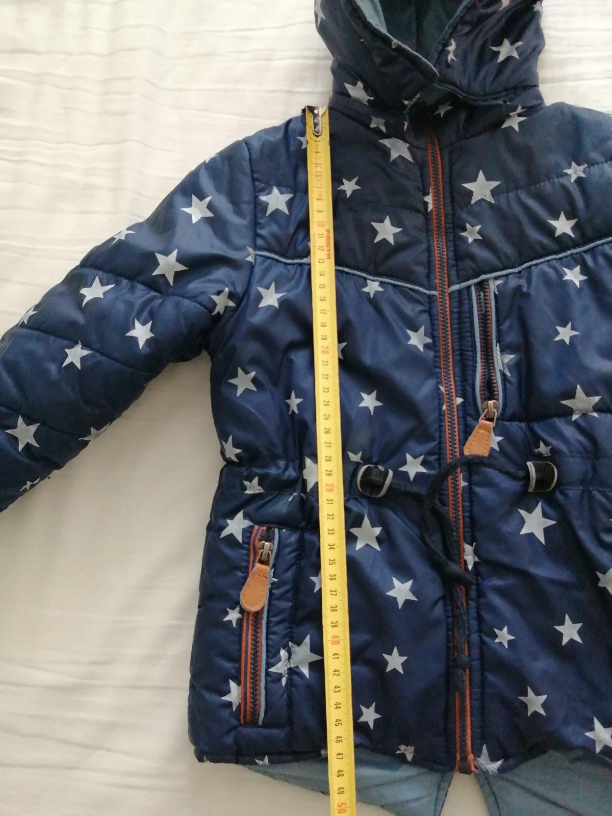 Krásna teplá nepremokavá bunda v super stave, nenasla som žiadne funkčné poškodenia, bola nosena na striedačku s inou bundou. kapucňa sa dá odopnut, v páse sú šnúrky na regulovanie šírky pasú. Ma predĺžený strih, krásne zakryje celý chrbát. Rozmery sú pofotené.