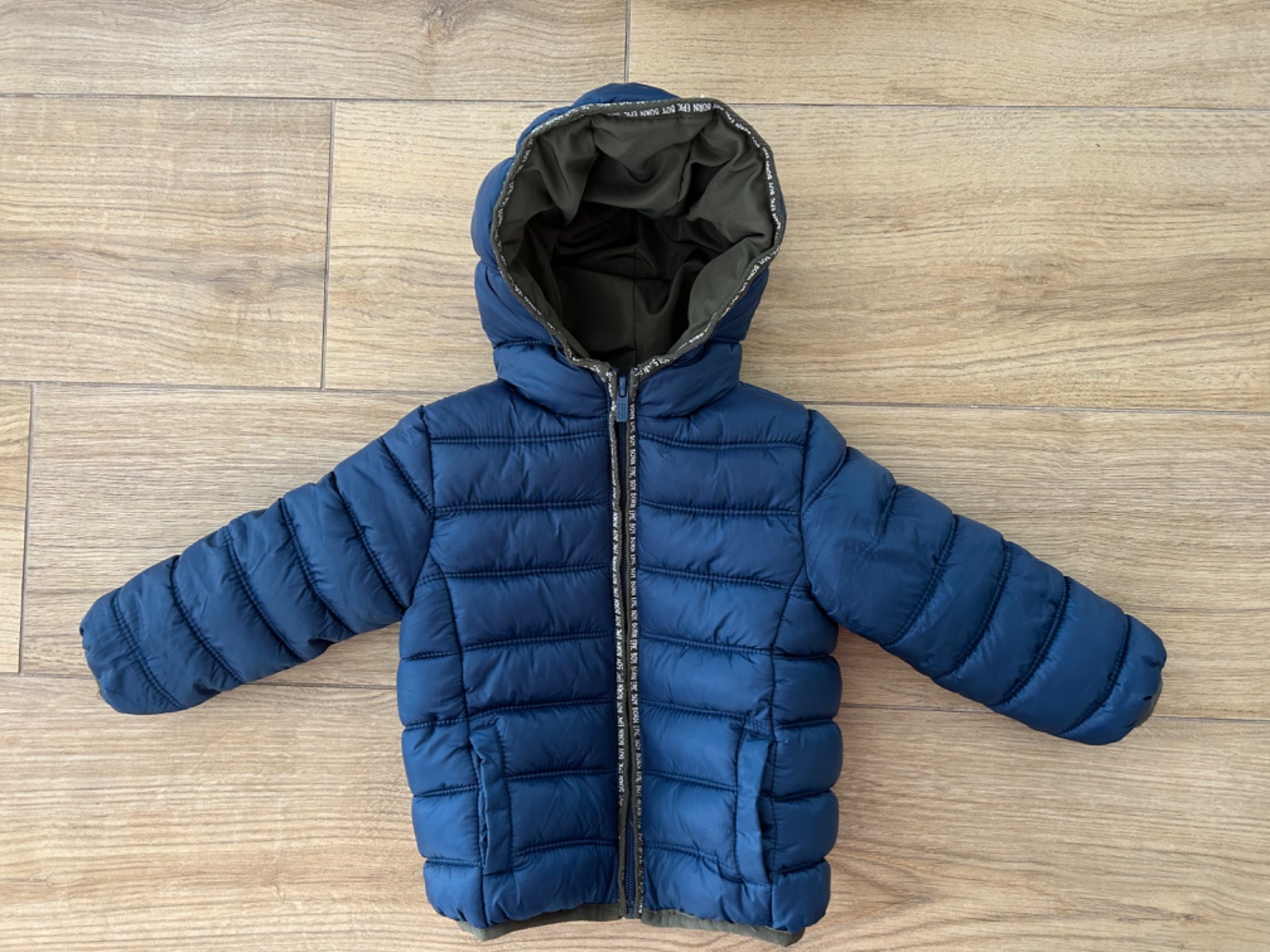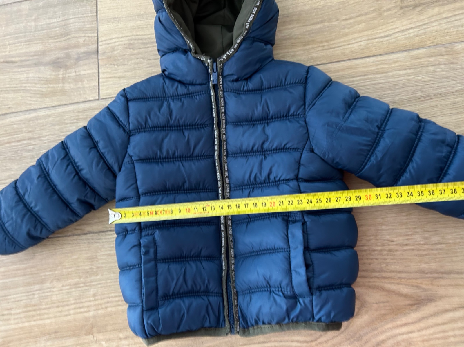 Teplučká bunda pre chlapca 12-18mesiacov, kupovaná v Taliansku. Vo vnútri je mäkká kožušinka Je vo veľmi dobrom stave. Celková dĺžka od ramena 32cm, rukáv 30cm, obvod pod pazuchami 70cm. Cena je be...
