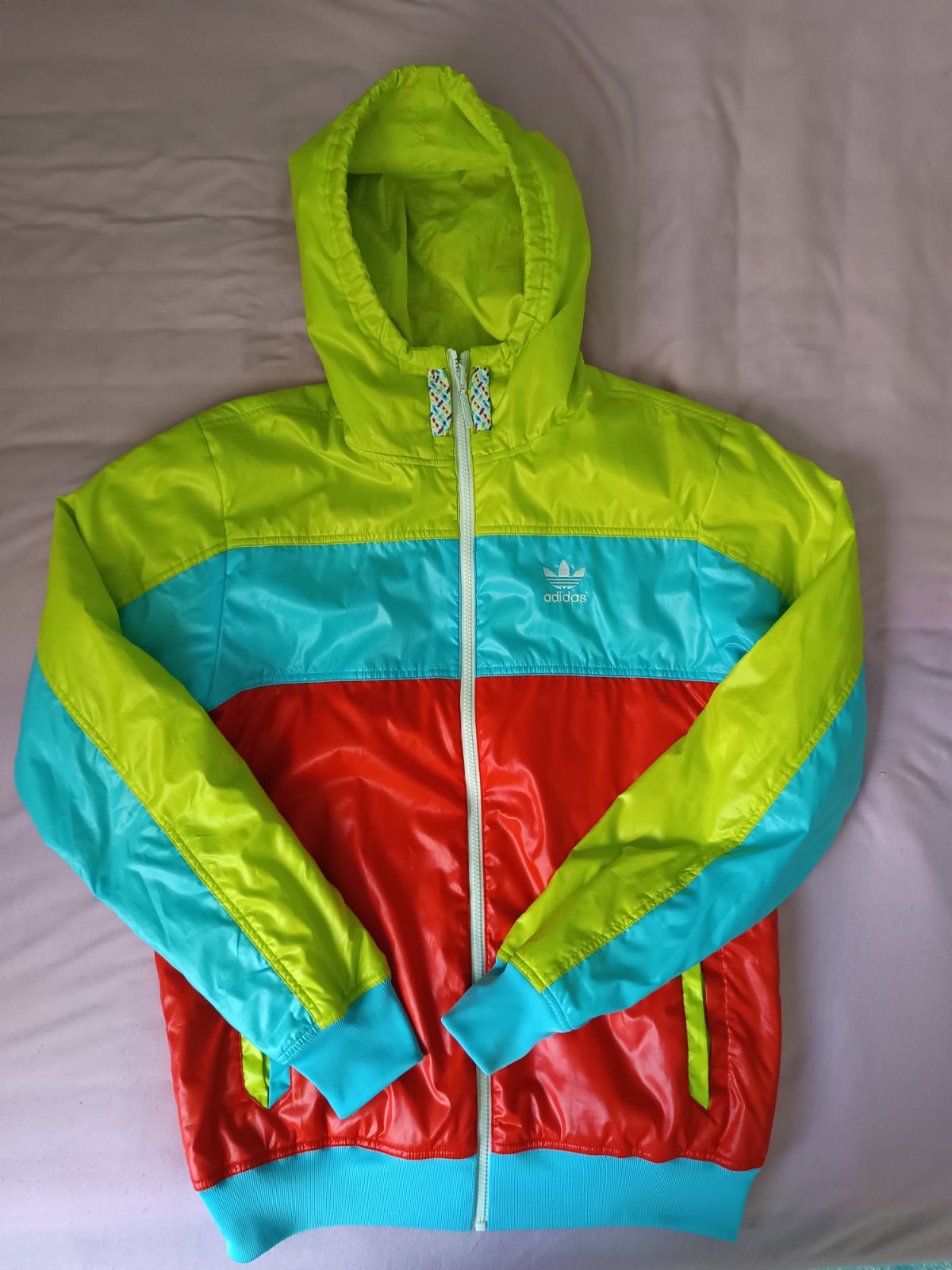 Panska bunda Adidas, nosena v super stave, velkost medzi M/L - na visacke je velkost 7, rozmery: sirka pod pazuchami 57 cm, dlzka chrbta od goliera dole 71 cm, rukav od goliera dole 81 cm ,cena 13 E