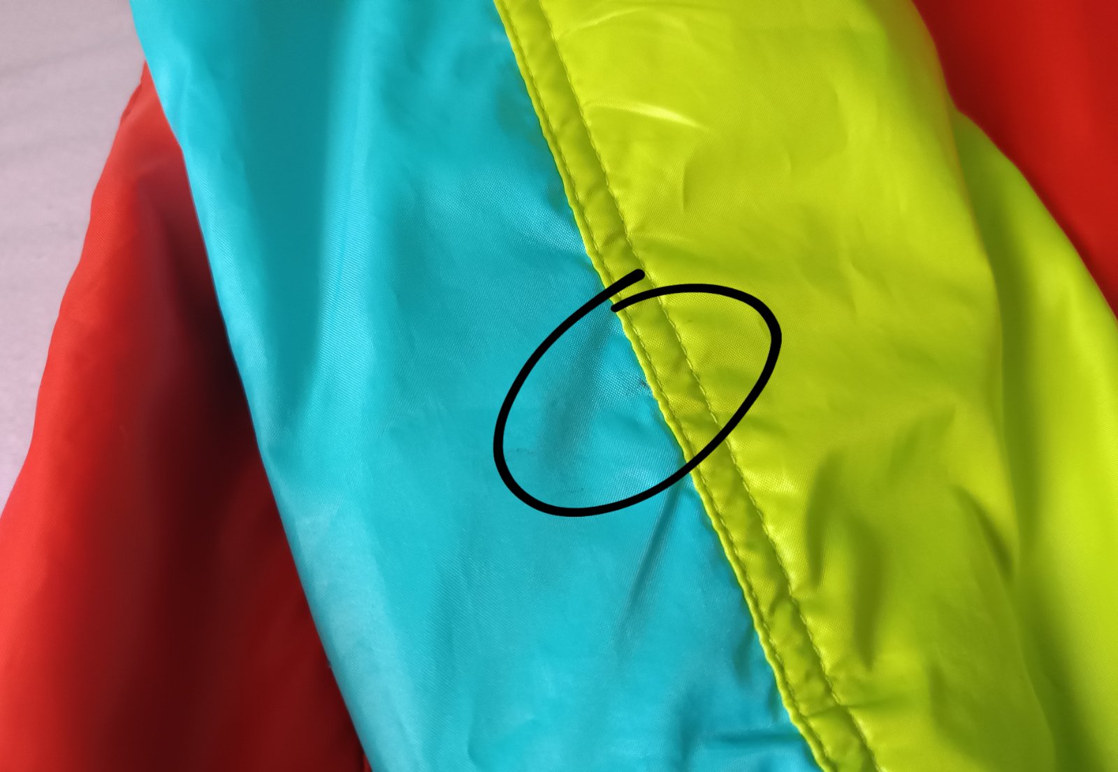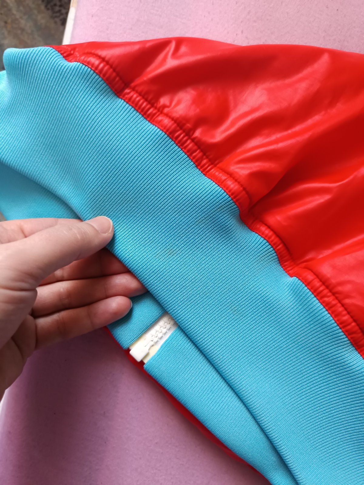Nosena malo, má malé fliaciky na dolnom patente a jeden mini fľak na rukáve, je to pofotene..