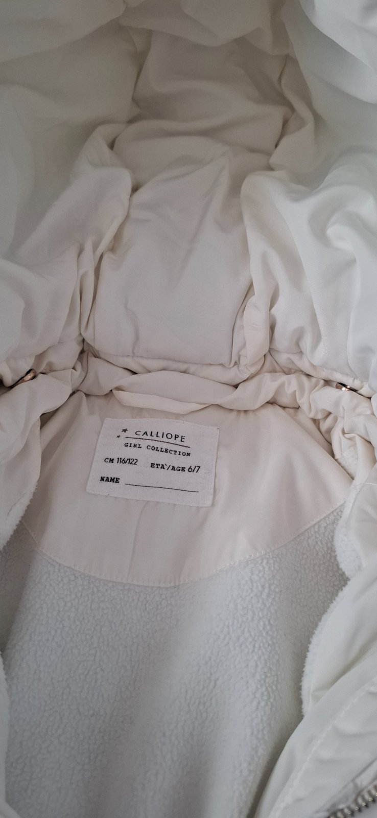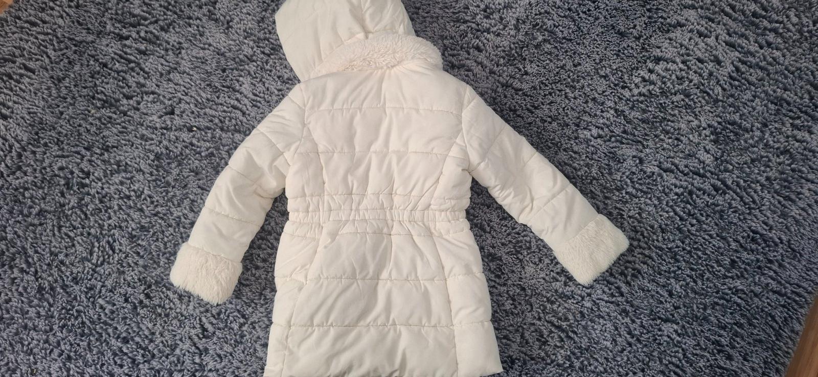 Dievčenská. U nás nosil chlapec :) PC bola 110€ Bez poškodenia,farba pekná biela. Cistena bola v čistiarní. Dĺžka 40cm Rukáv od krku 51cm Šírka 36x2 Bundička je do pása