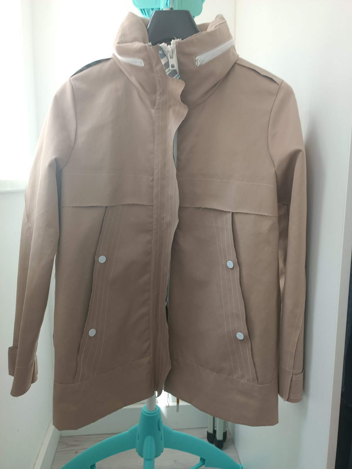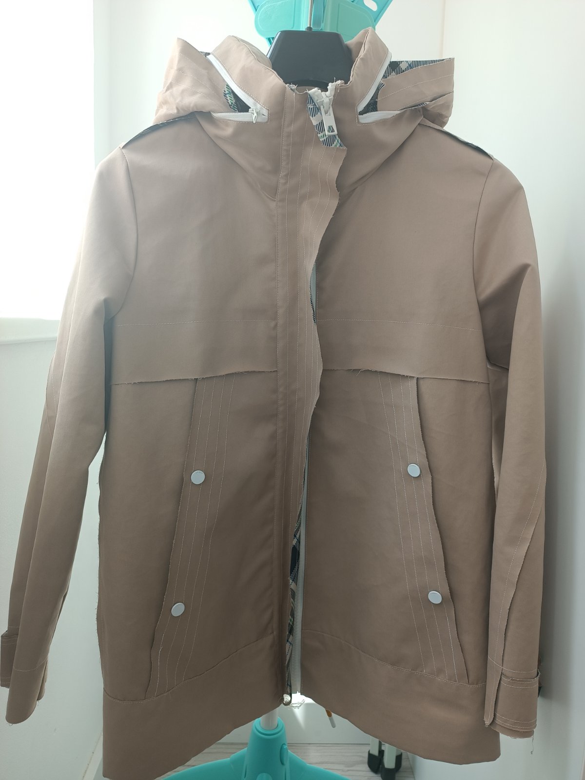 Výborný stav. Variabilná - kapucňa sa dá schovať do krčnika (viď ďalšie foto), kapucňa sa dá stiahnuť šnúrkou,rovnako sa na spodu bunda dá stiahnuť šnúrkou,vrecká sa dajú tiež variabilne nastaviť na dva alebo jeden klip(cvok)