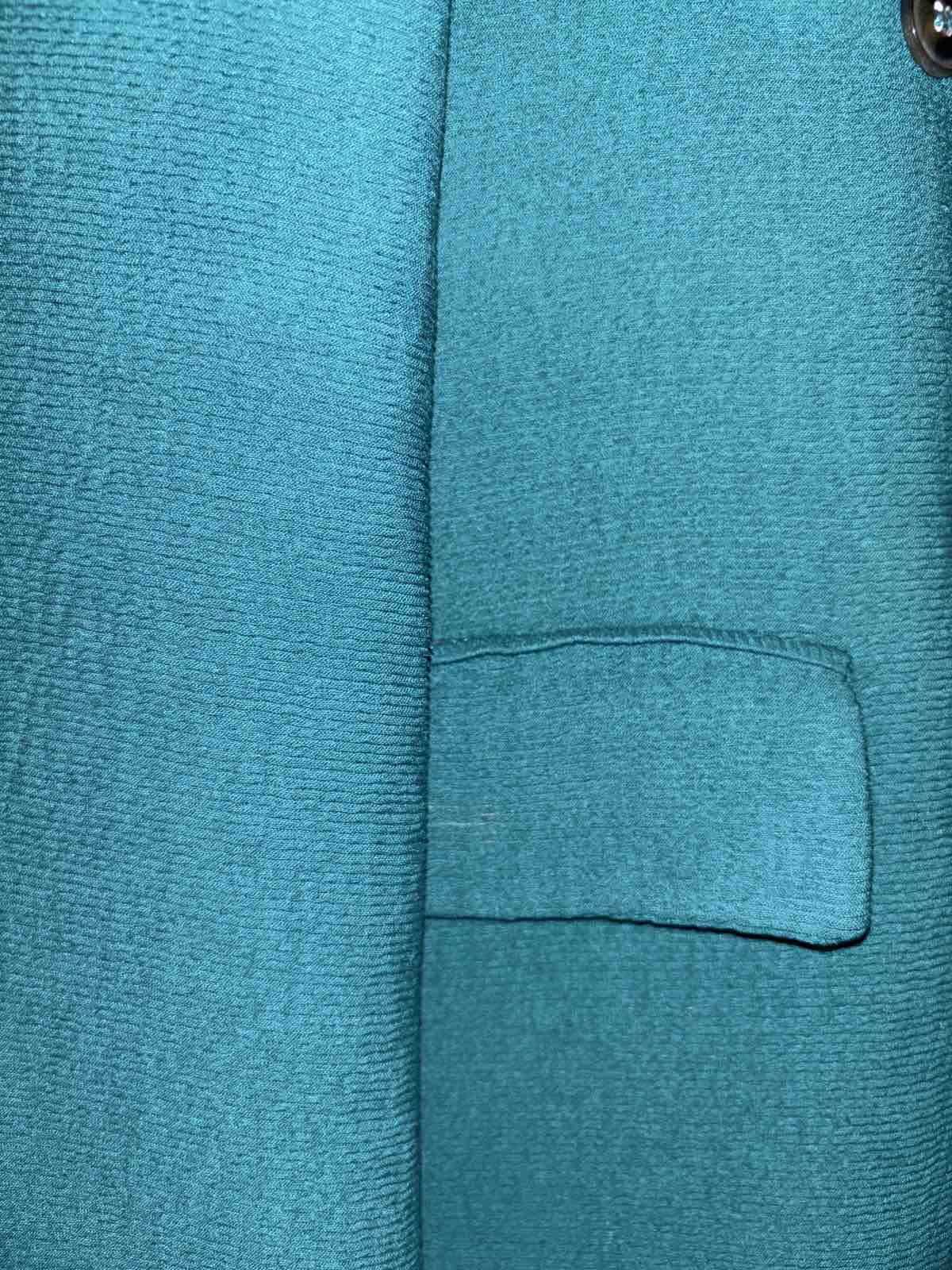 Bez známok nosenia, smaragdovo zelený, prechodný, veľkosť M, aj na L, šírka pod pazuchami cca 54 cm, dĺžka 93 cm