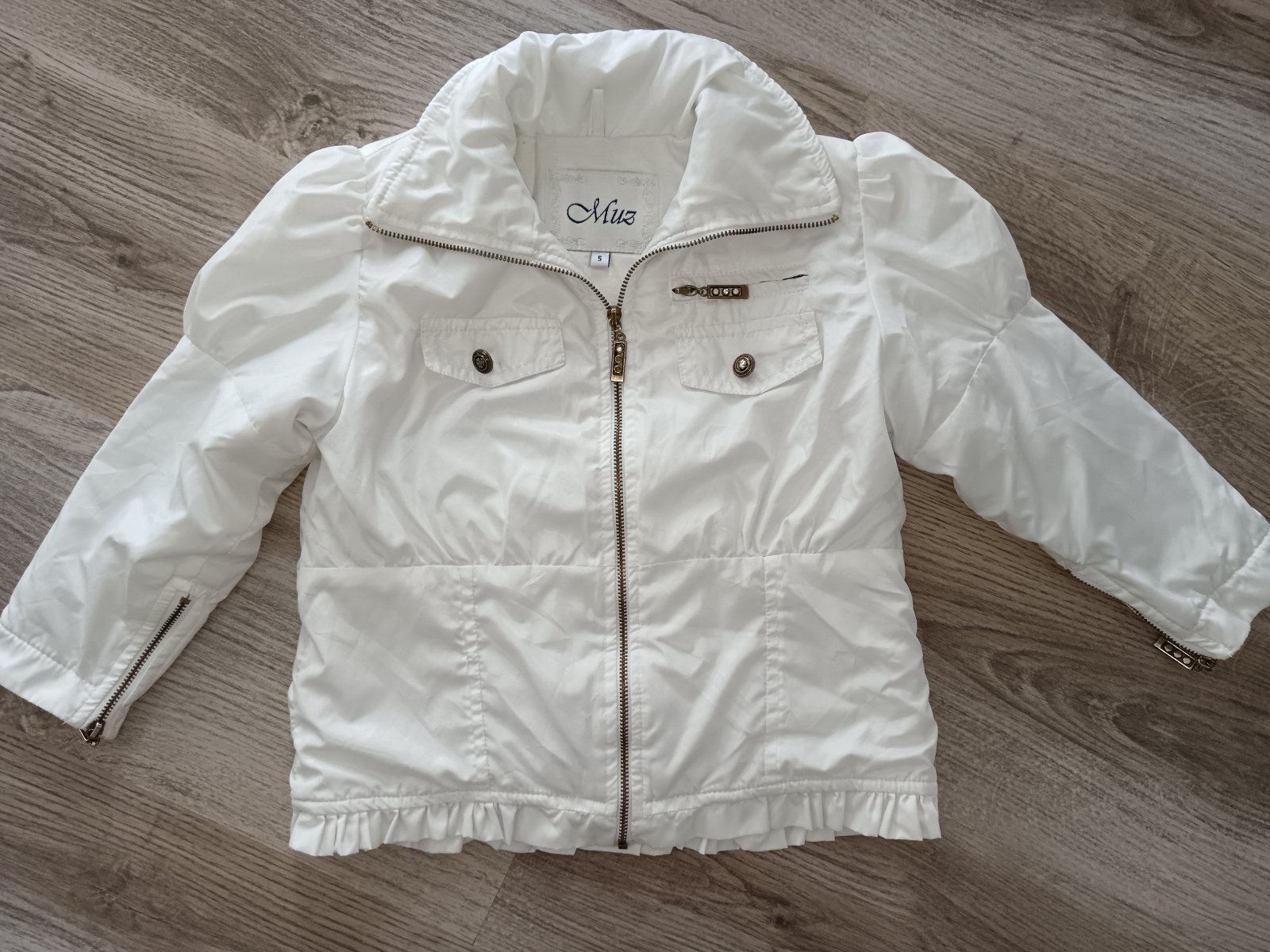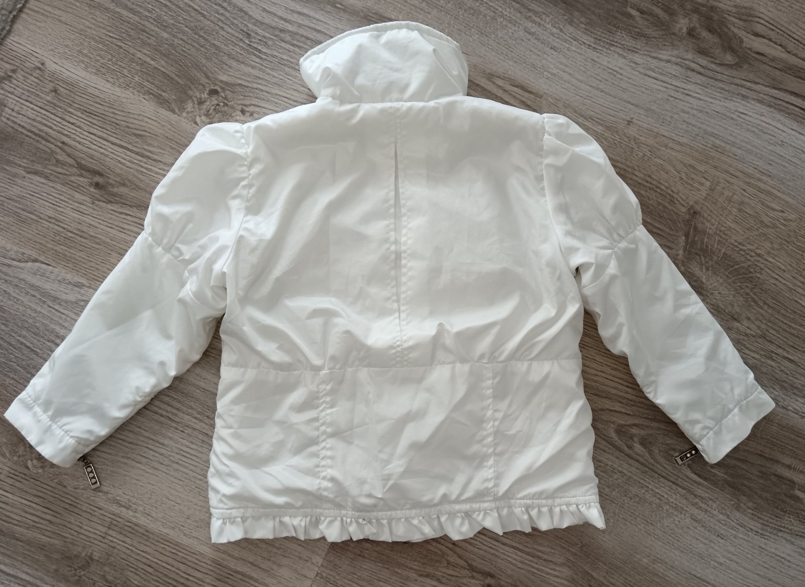 Predám nádhernú ľahučkú bielu ľahučkú bundičku z jemného šuštiaku. Bundička je podšitá tenučkou látkou. Veľmi pekná, málinko nosená, šetrili sme si ju na príležitosti. Je nádherná, bez známok nosen...