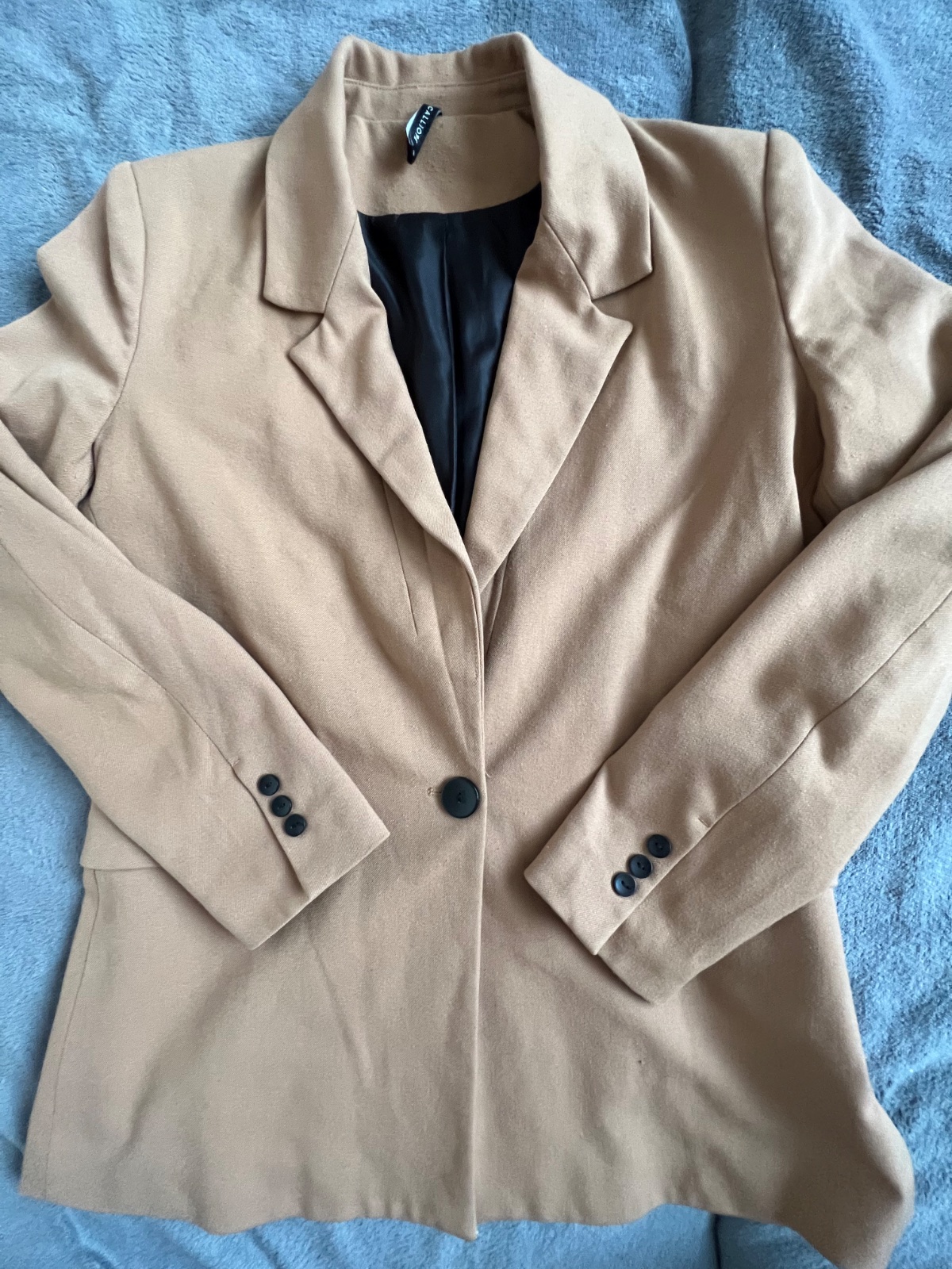 Sako je z príjemného materiálu bavlnka, dobre sa nosí, pekne ukáže na postave, je v zachovalom stave. Vhodné aj na leto.