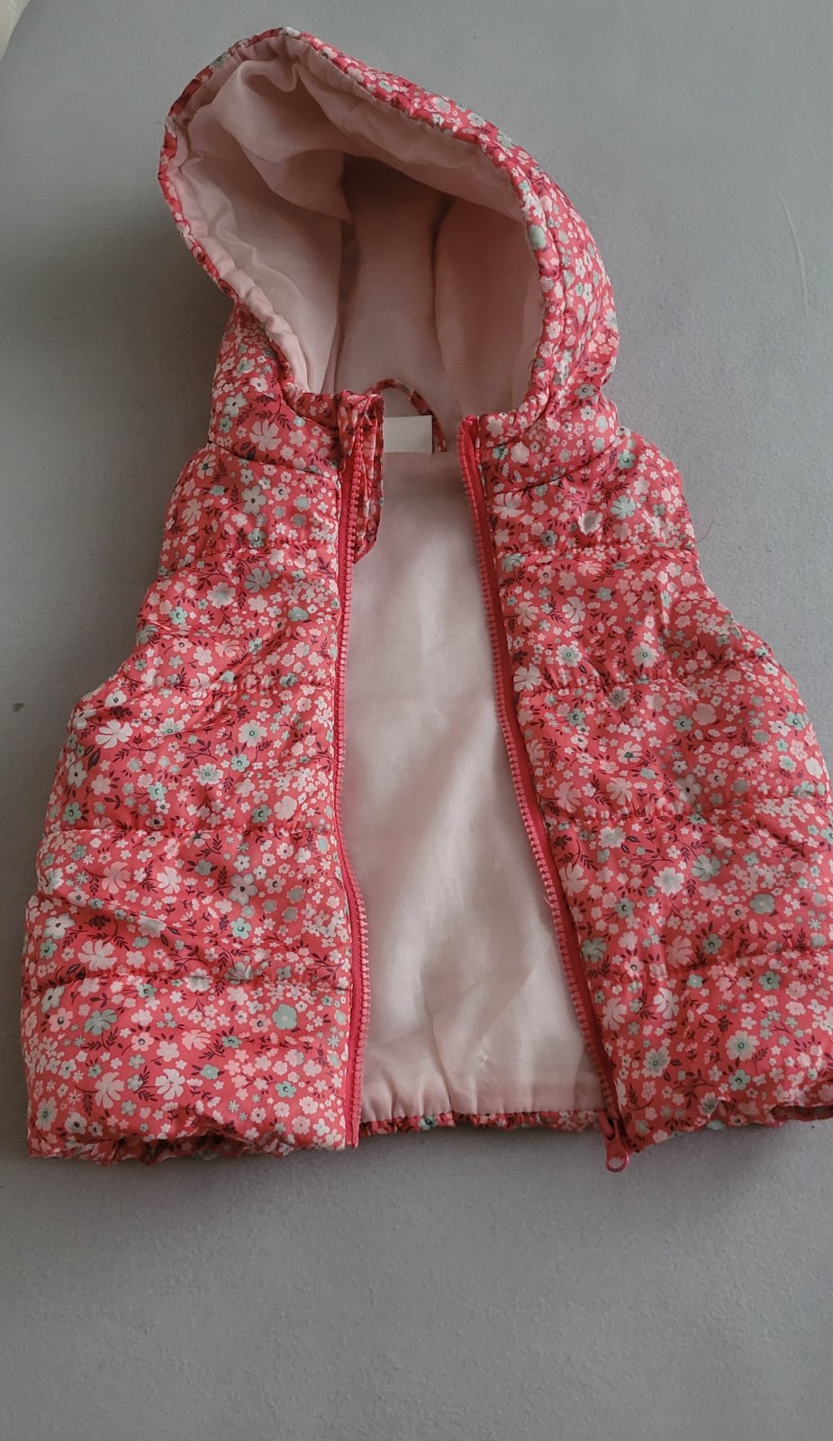 vesta vhodná na jar/jesen. Na prednej strane je trošku pustená látka. Skoro vôbec to nevidno.
