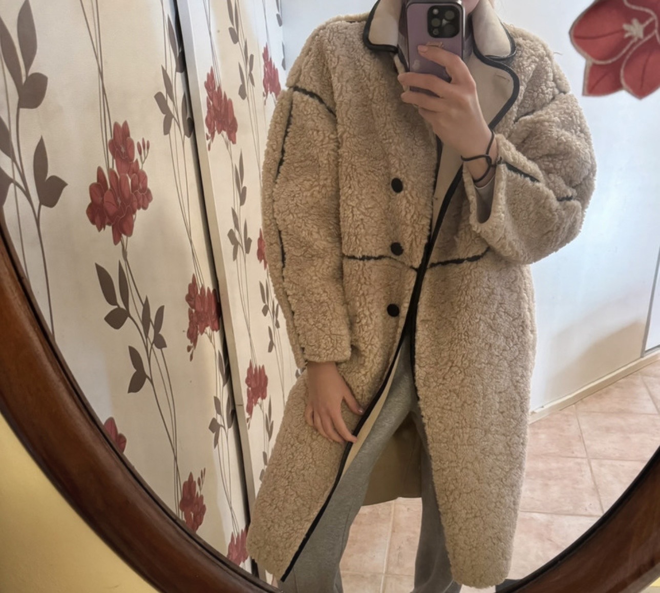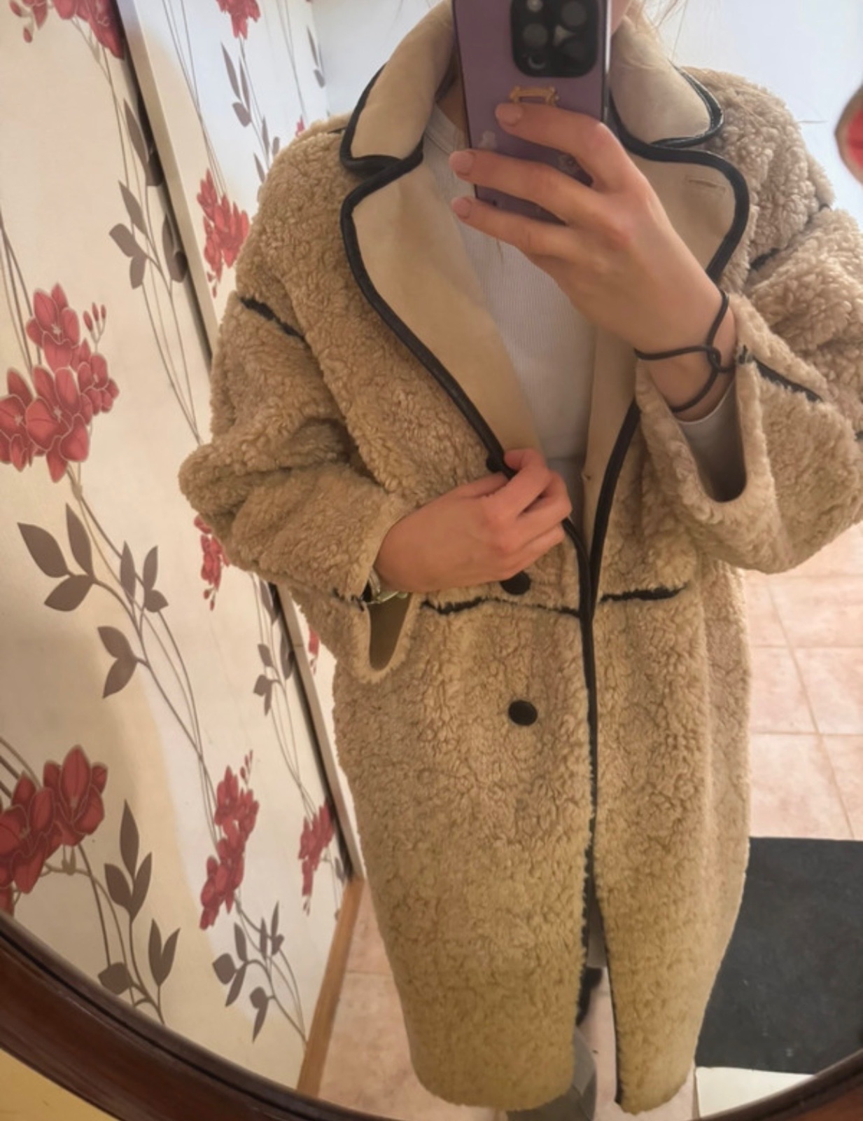 Predám nádherný nový teplý dlhý plyšový kožúšok/kabát, veľkosť XS, sedí aj na S/M. PC129.