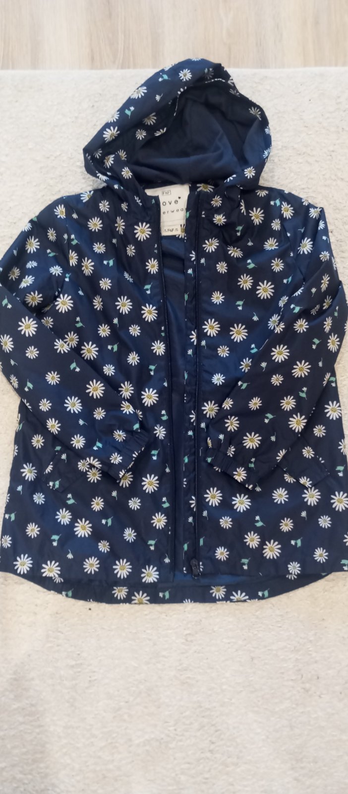 Výborný stav. Zapínanie na zips. Má vrecká a kapucňu. Veľ 8-9 rokov. Nie je podsita. Na jesenné a menej zimné obdobie.