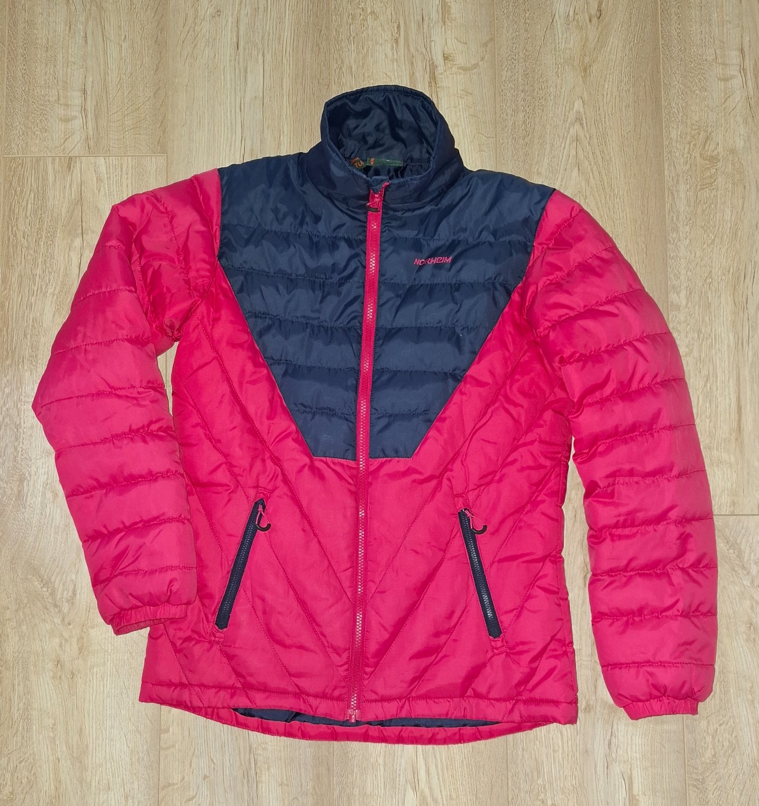 Veľmi pekny prešivany kabatik pre dievčatka, lososovej farby ako novy, minimalne noseny len ku konci zimy, obvod hrudnika je 90 cm, rukavy 63 cm plus 8 cm manžeta