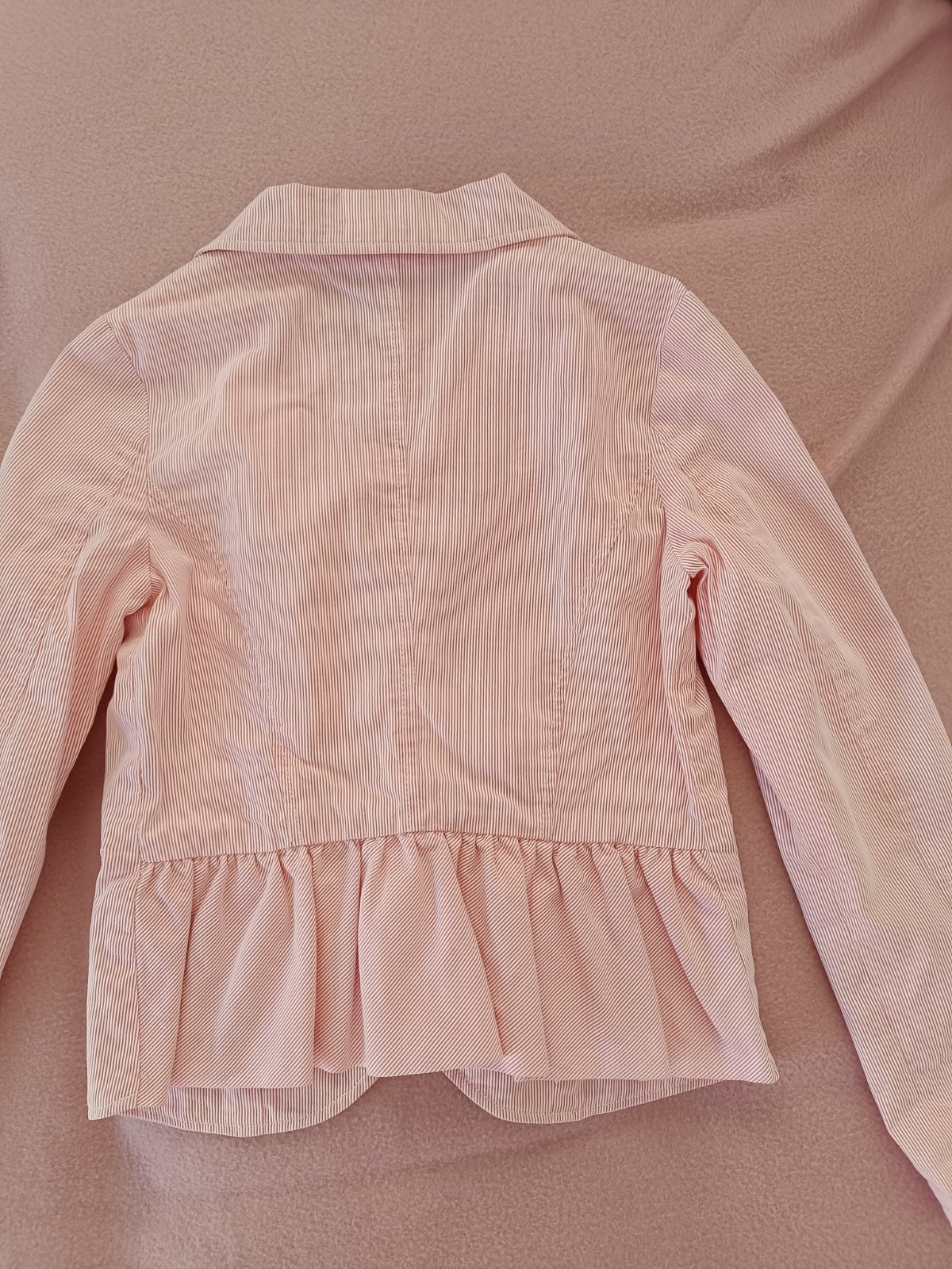 Pekný kabátik min. Nosený. Bez chybičky. Dĺžka rukáva od ramena je 44 cm, dĺžka rukáva od pazuchy je 34 cm, dĺžka kabáta je 45 cm bez goliera. Na spodnej strane je ešte bavlnená podšívka. Cena+pošta