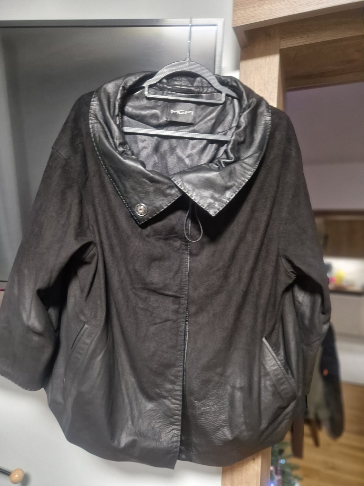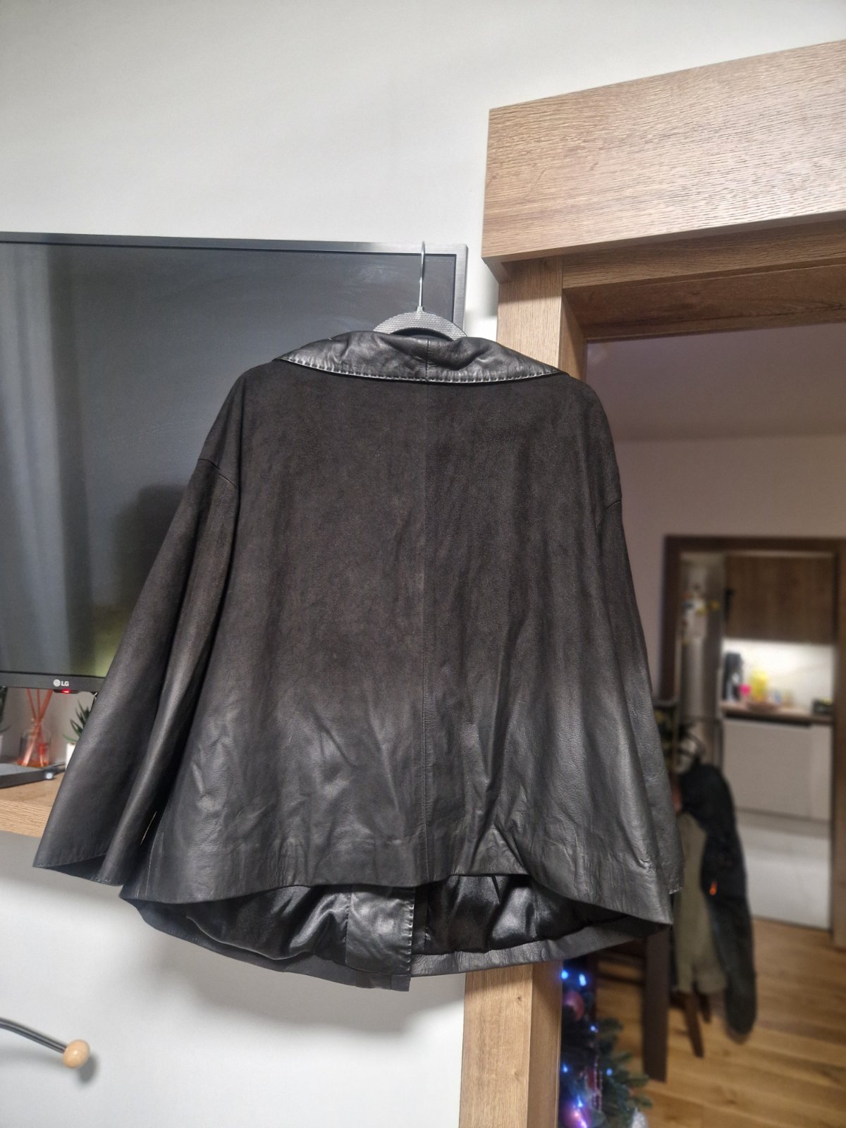 Kožená bunda málo nosena čiže nová Pravá Kožená bunda čiernej farby Značka Different veľkosť 48 Dĺžka 100cm
