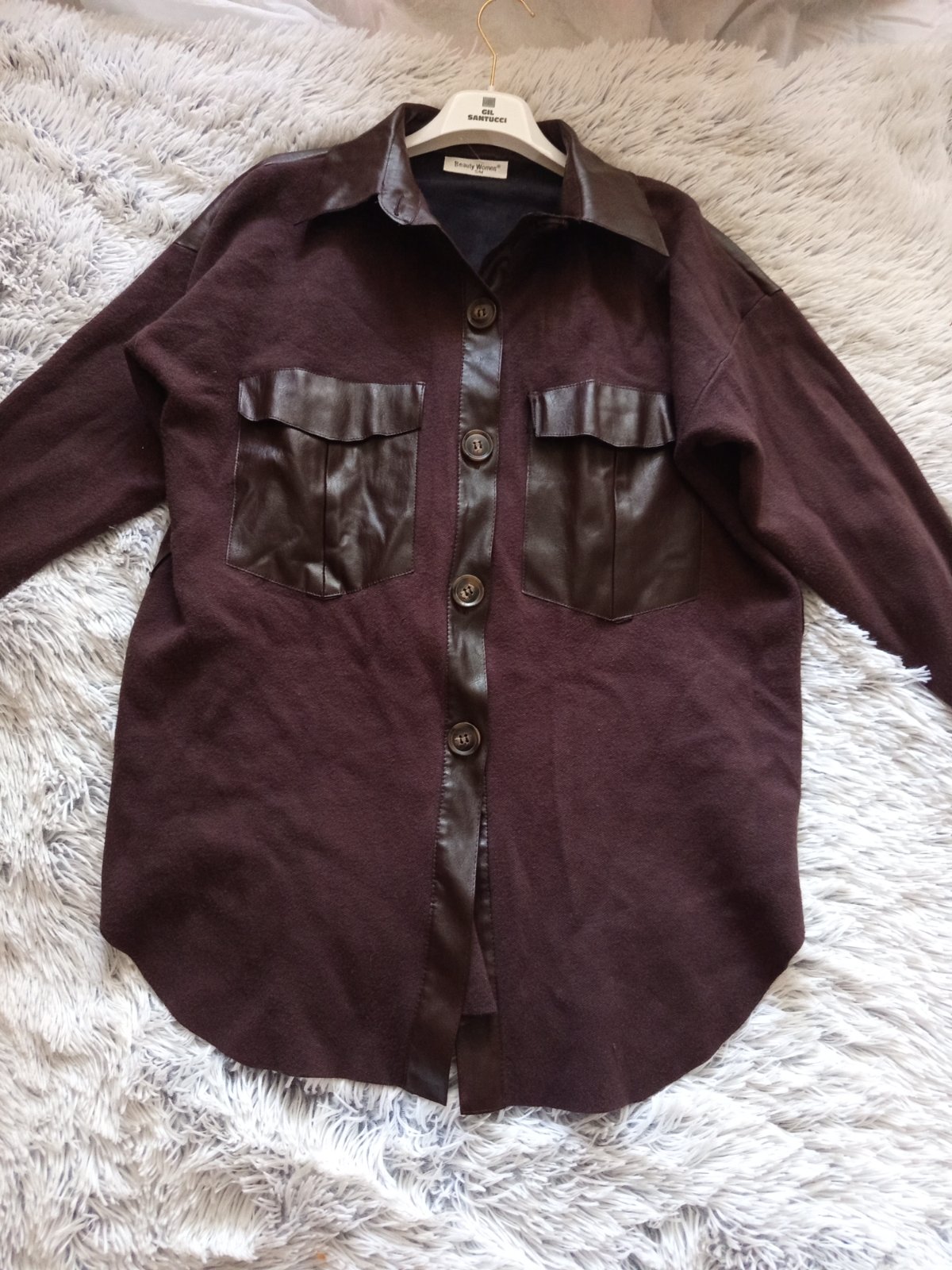 Dámska krátka bunda s leopardím vzorom a výraznou kvetinovou brošňou. Prechodná, s vyhrnutými 3/4 rukávmi. Bez zapínania. Nie je elastická. Materiál:100%polyester. Veľkosť UNI (vhodná pre M,L,XL). ...