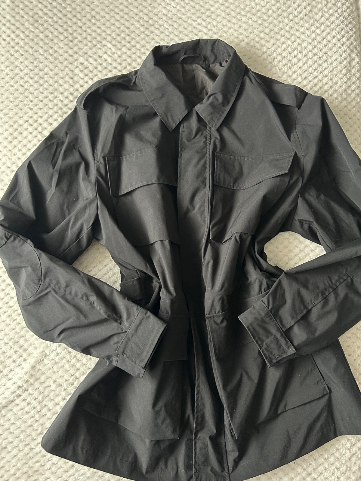 Šuštiaková podšitá čierna bunda v Top stave bez poškodení, rozmery: dĺžka 79cm, šírka 2x70, dĺžka rukáv+plece 80cm, cena 4€+pošt