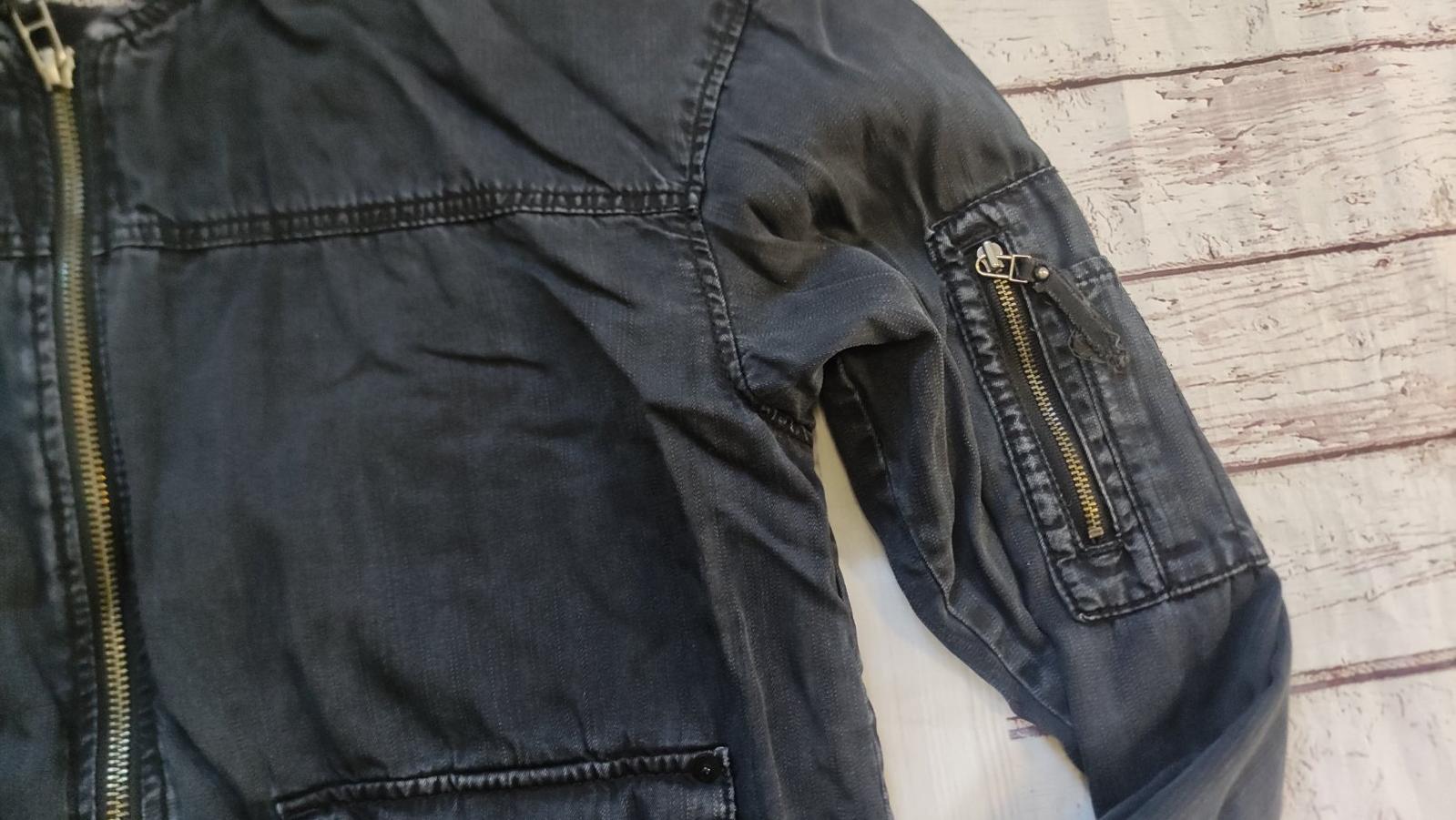 Štýlová zateplená bunda vo veľmi dobrom stave, bez poškodení. Ženský pripasovaný strih, dve hlboké zapínacie vrecká po bokoch a jedno malé zapínacie vrecko hore. Bunda je skôr na prechodné obdobie...