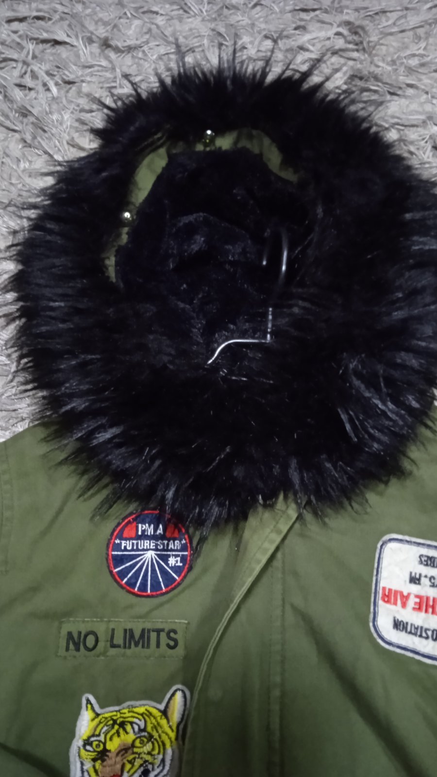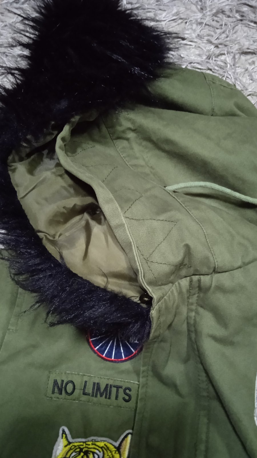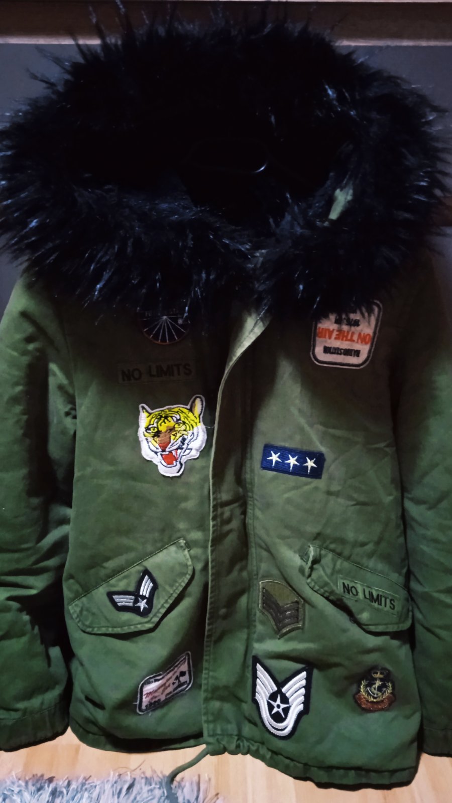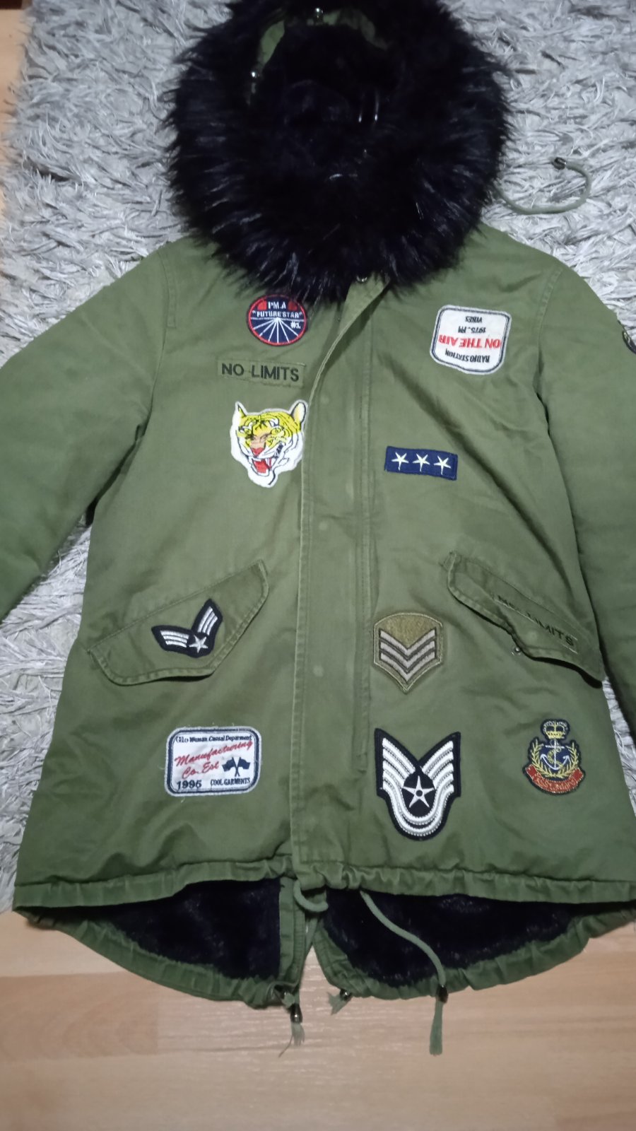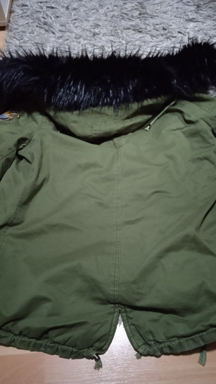 Pekná bunda par krát oblečená, nepoškodena, kožušina z kapucne sa dá odopnut, dĺžka bundy 78 cm, dĺžka rukáva od pleca 62 cm od krku 73 cm, šírka pod pazuchami 56 x 2 cm
