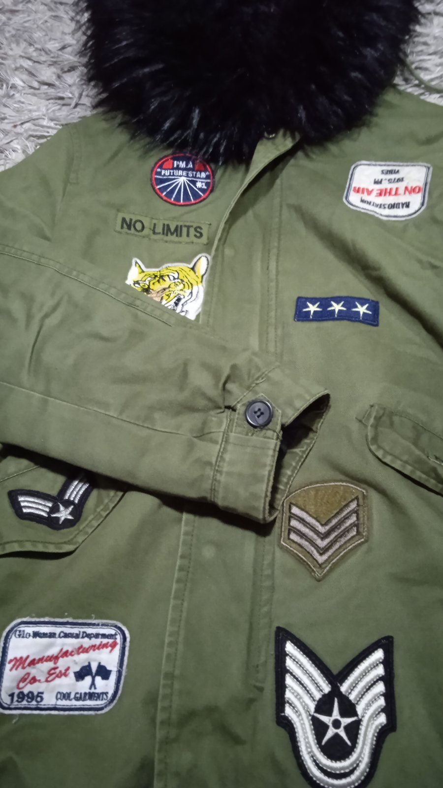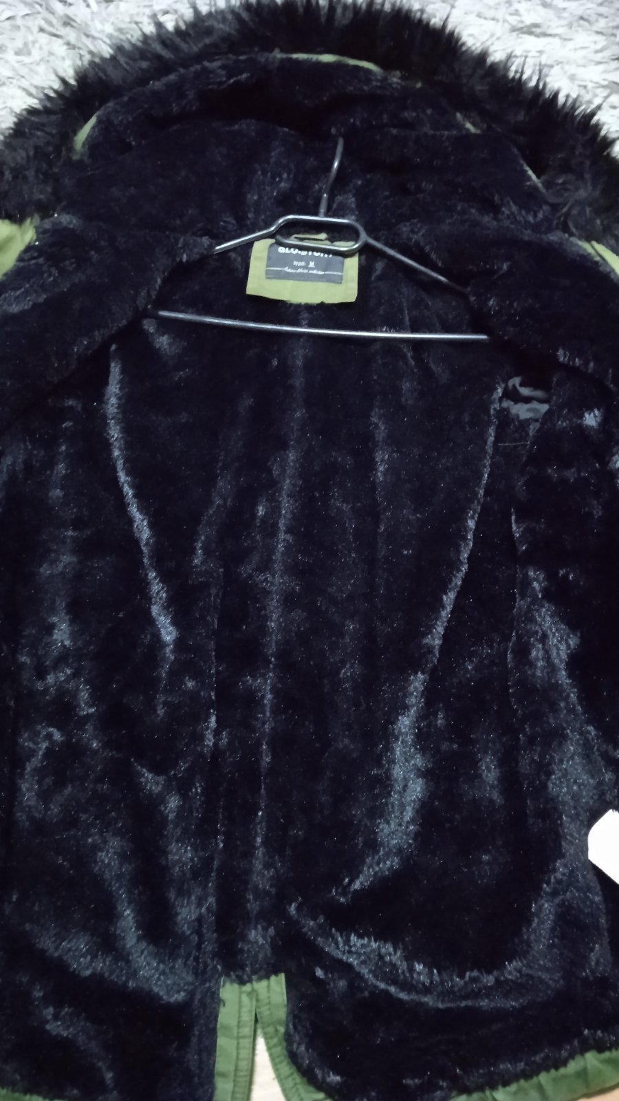 Bunda v top stave, nosenia jednu zimu, odnímateľná kožušina a opasok.