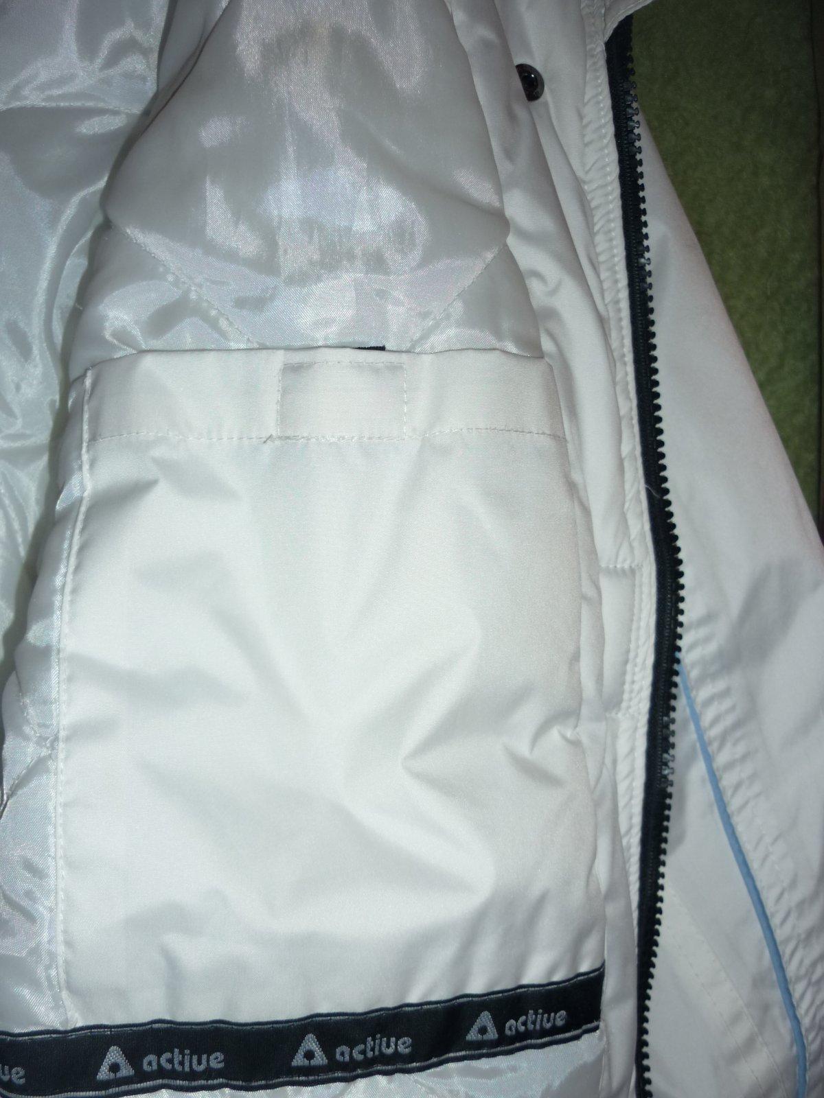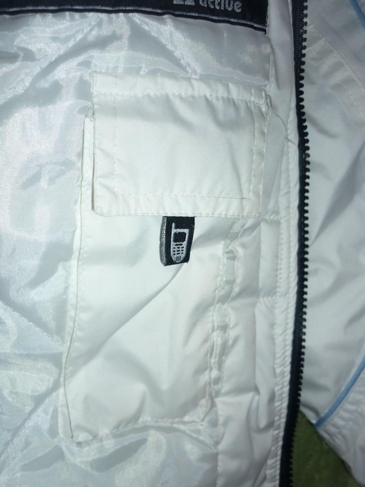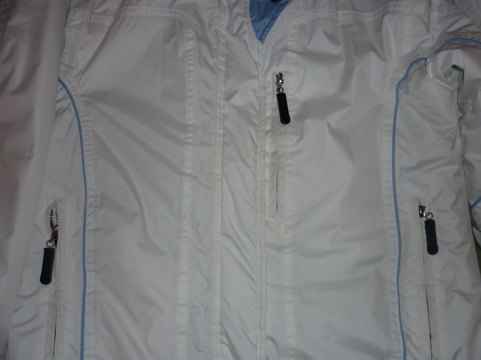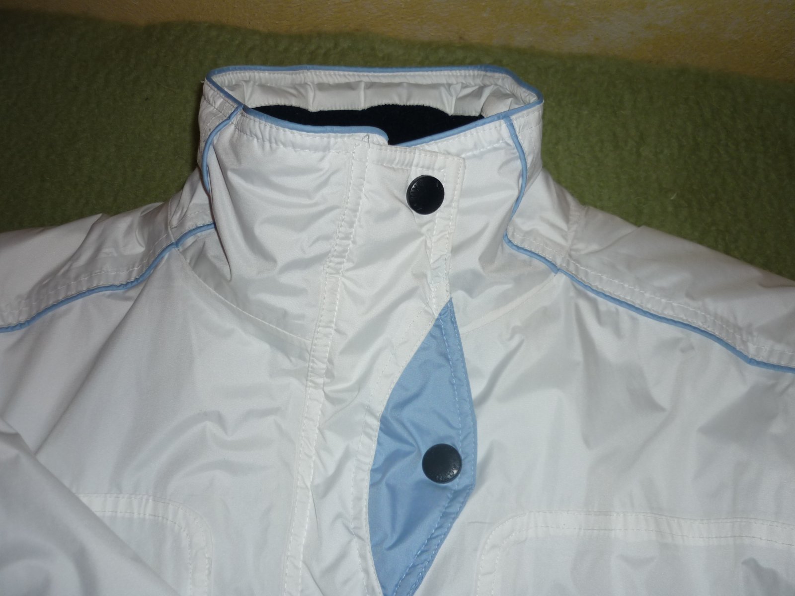 velmi pekna biela bunda ako sneh s modrim konbynovana.Ma v nutri vacky na doklady napr.a na telefon.