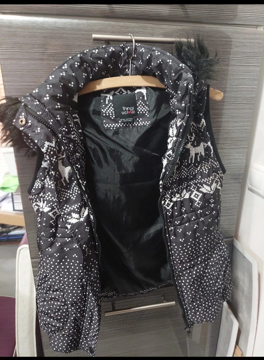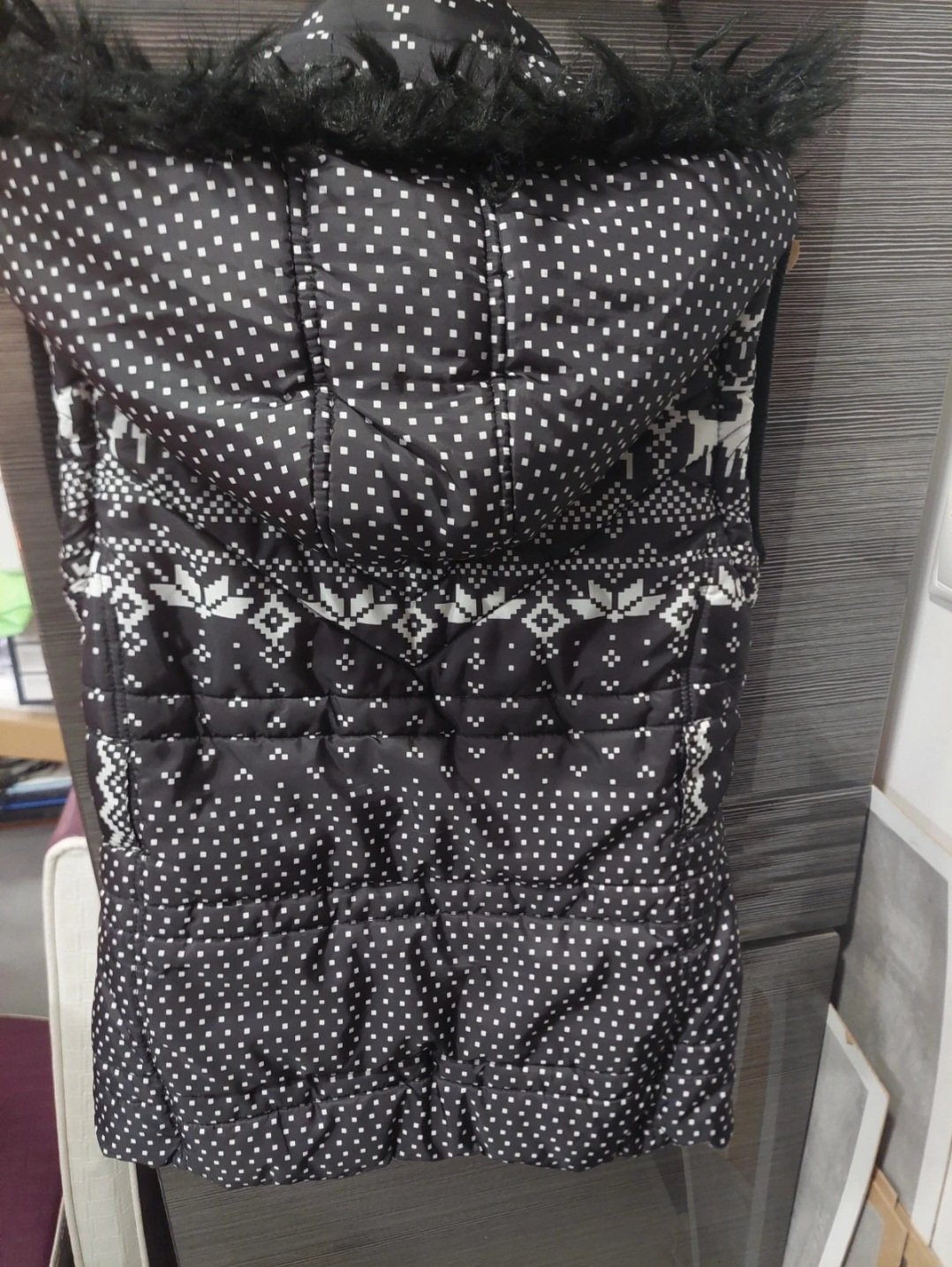 V super stave bez poškodenia, kapucňa na zips s kozusinou, s-44cm, dl-58cm