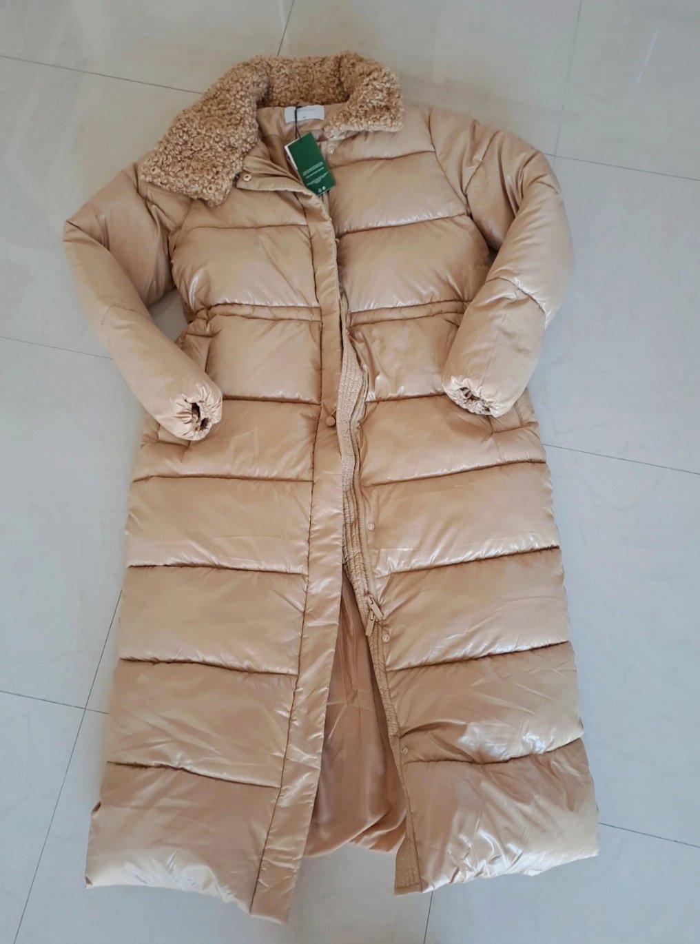 Krémová zimná bunda oblečená pár krát