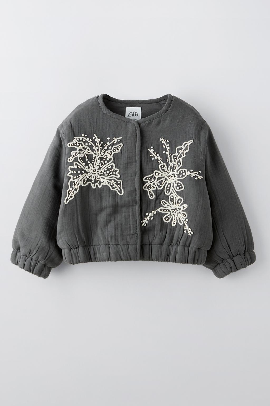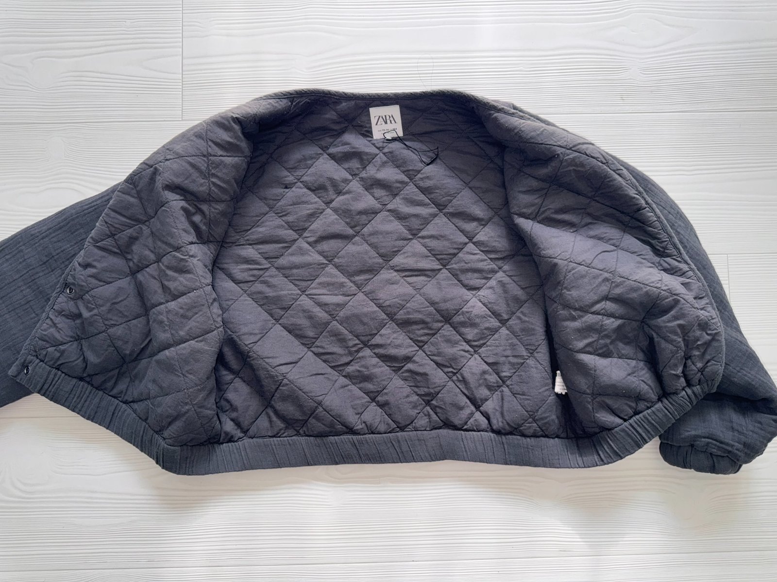 Krátka bunda bomber s okrúhlym výstrihom a dlhými rukávmi.