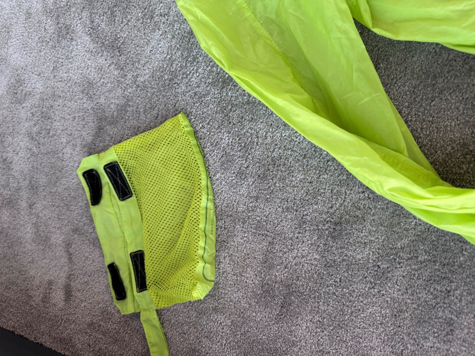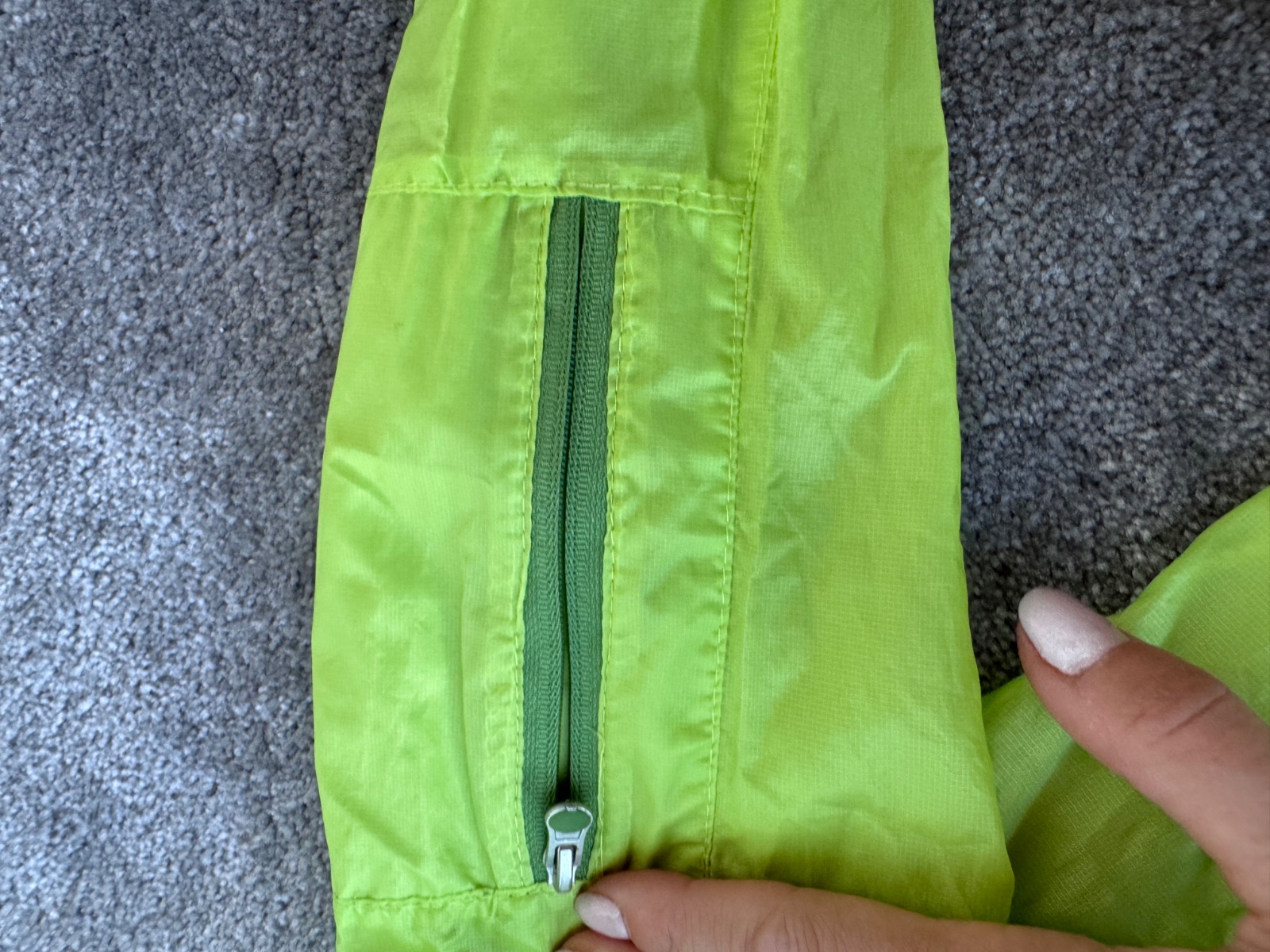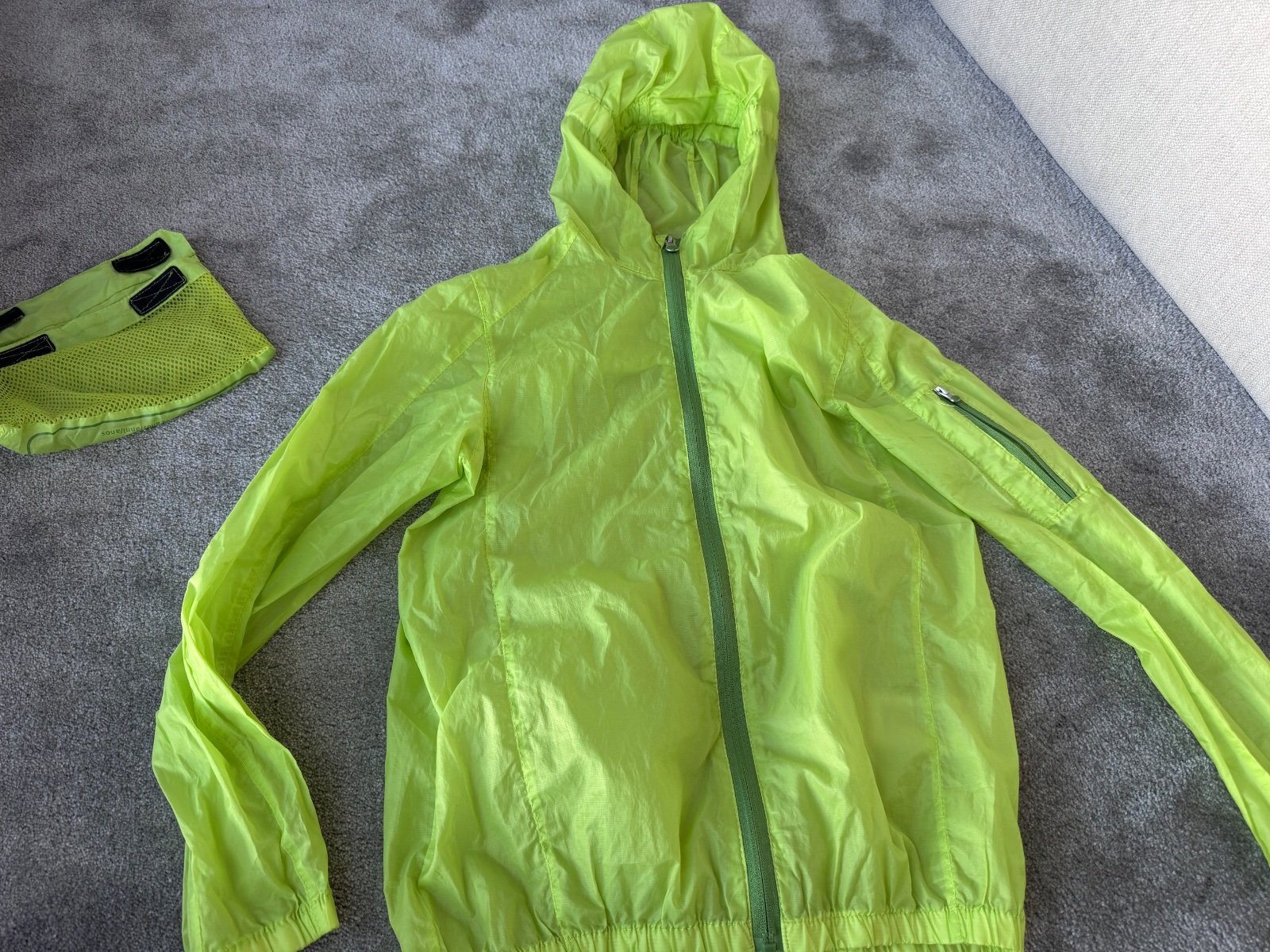 Bez poškodenia, dĺžka 60cm, šírka 46cm, rukav od kapucne 64, od pleca 54
