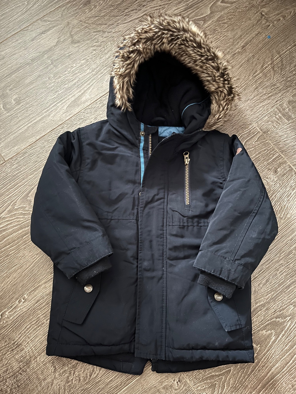 tmavomodra zimna parka, znacka Next, velkost 98, pekny noseny stav. Osobny odber BA-Petrzalka alebo postou/packetou po vopred uhradeni platby vratane postovneho. Cena 9 eur + posta.