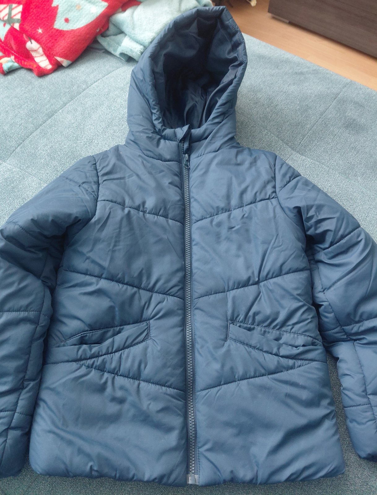 Veľkosť je porovnateľná s bundou veľkosti 134 zo Sinsay. Po jednom dieťati, vo veľmi dobrom stave.