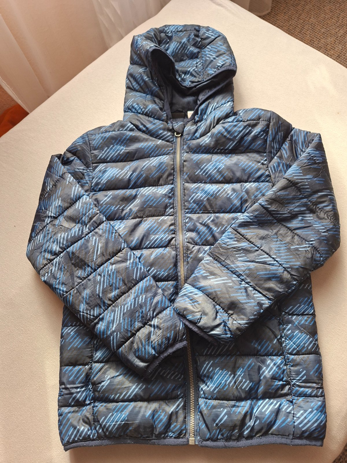 Jemné zateplená bunda, ideálna na jeseň, jar, veľkosť 140, 9-10 rokov. Maskáčová modrá.