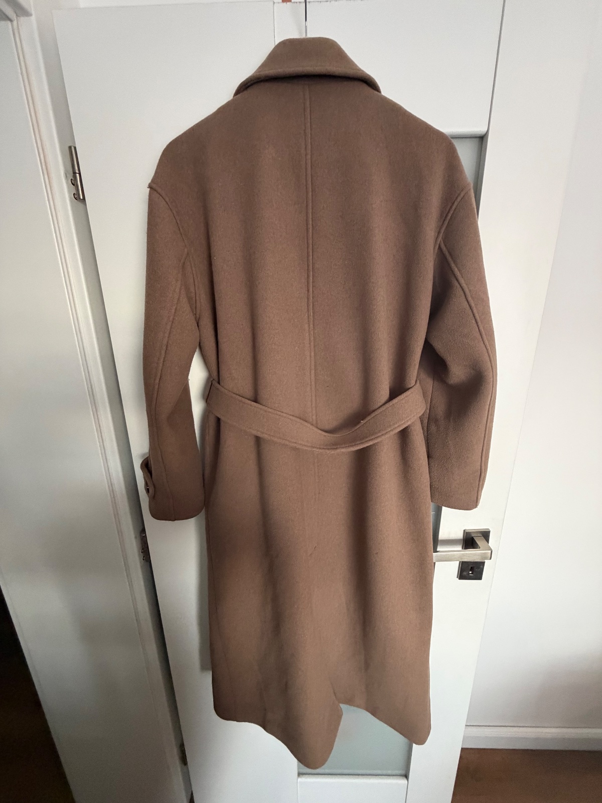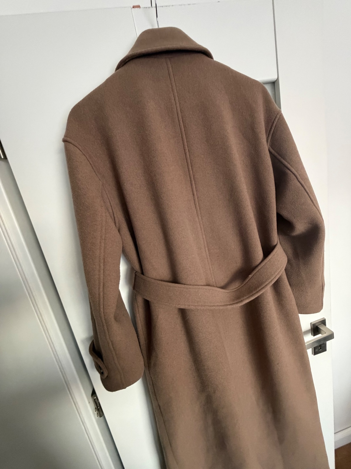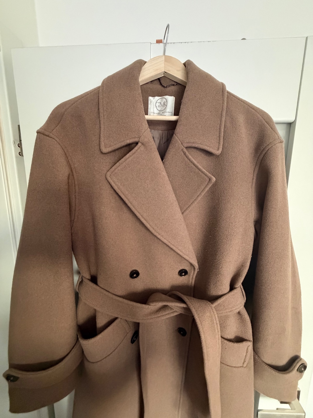 Top stav, oblečený pár krát, trendy farba taupe (presne ako na titulnej fotke), ťažko sa fotí, obsah vlny, gombíky a uväzovanie, zn.Guido Maria Kretschmer for About you, PC:229€, dl: 122, š.52, rukáv 20+56