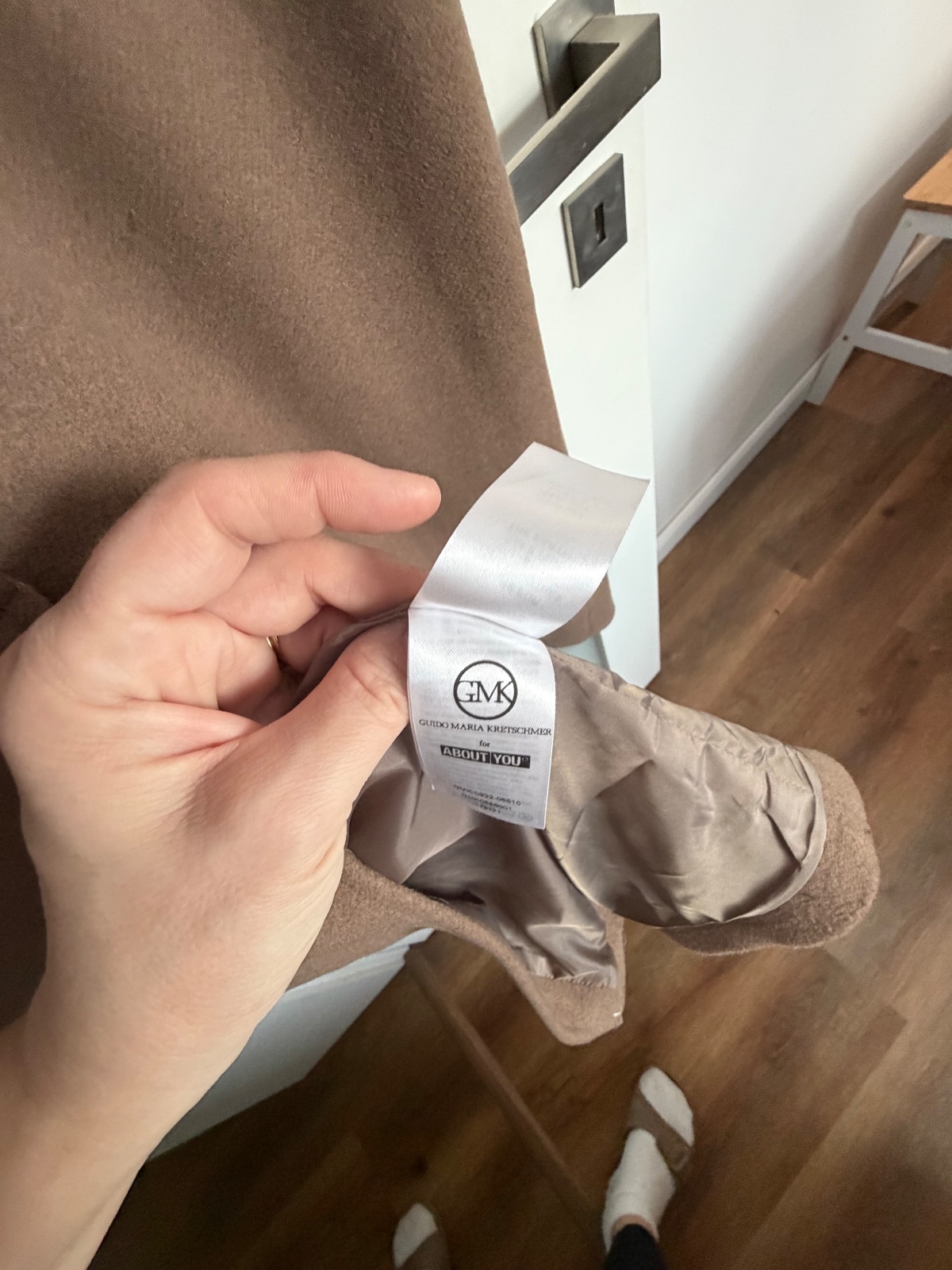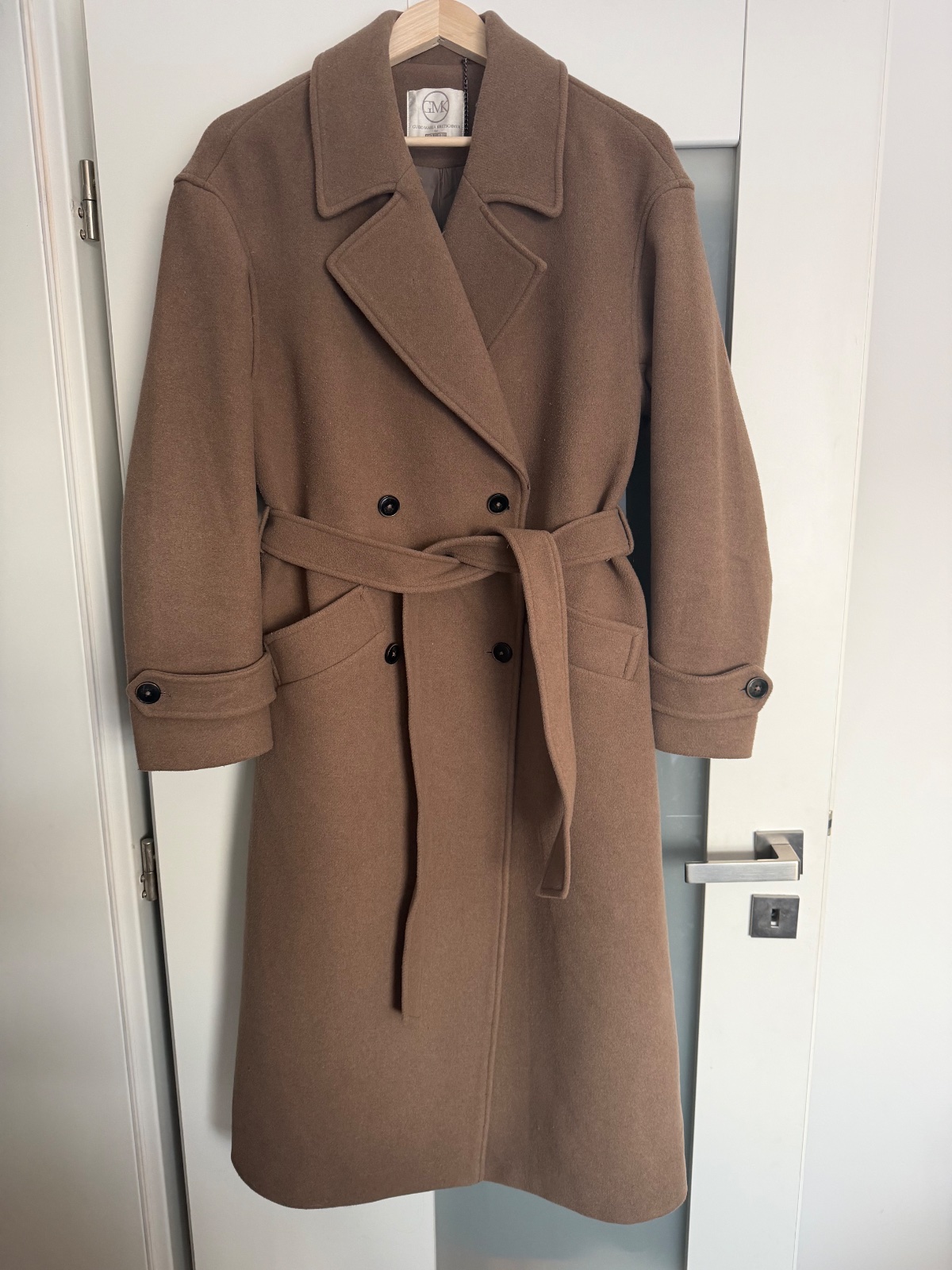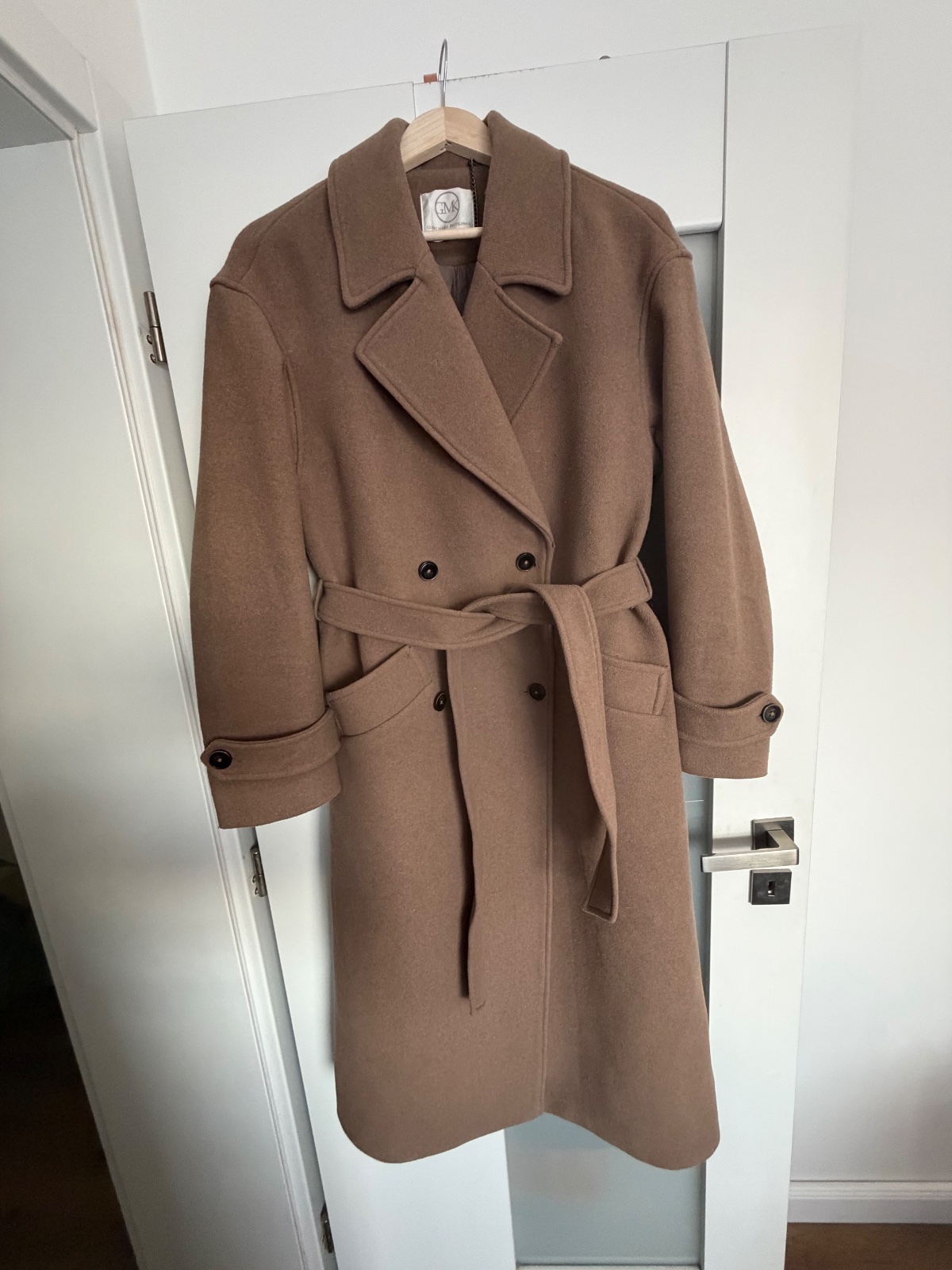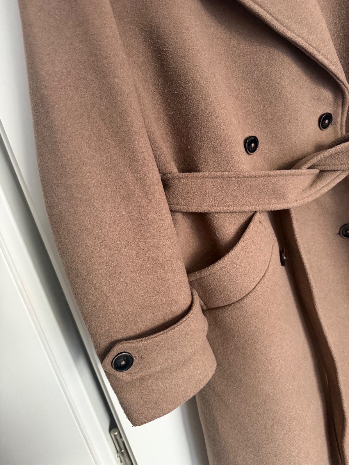 Top stav, oblečený pár krát, trendy farba taupe (presne ako na titulnej fotke), ťažko sa fotí, obsah vlny, gombíky a uväzovanie, zn.Guido Maria Kretschmer for About you, PC:229€, dl: 122, š.52, rukáv 20+56
