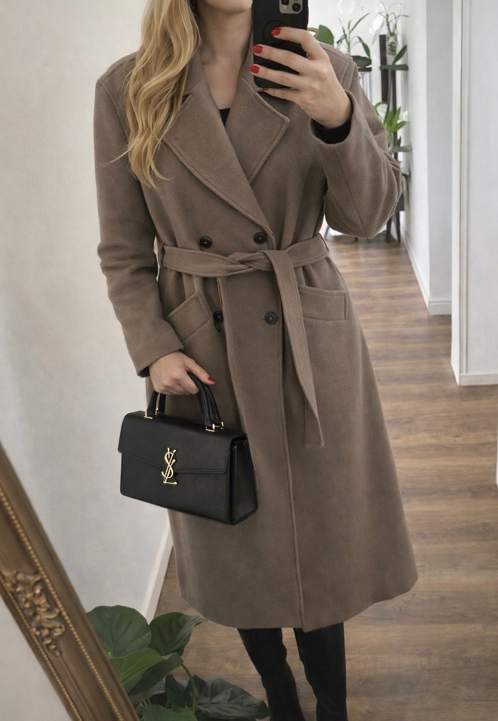 Vlnený kabát vo farbe taupe