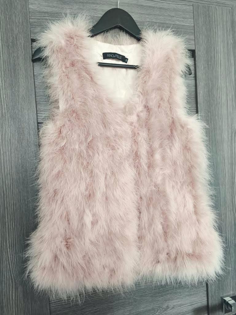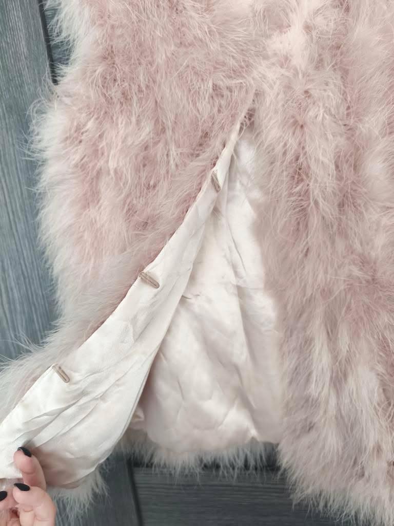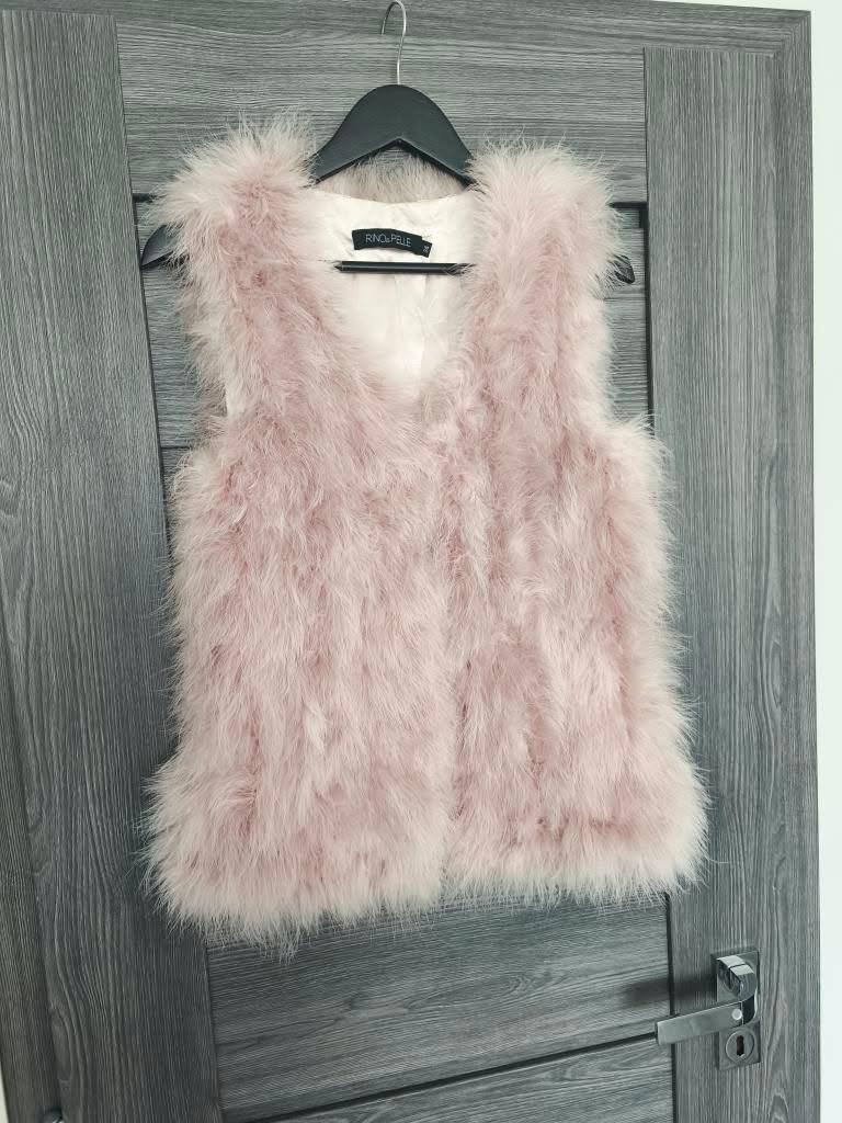 Krasna ruzova vesticka z original pstrosieho peria zn. Rino&Pelle zapina sa na haciky najlepsie sedi na velkost XS. Top stav, povodna cena vysoka.