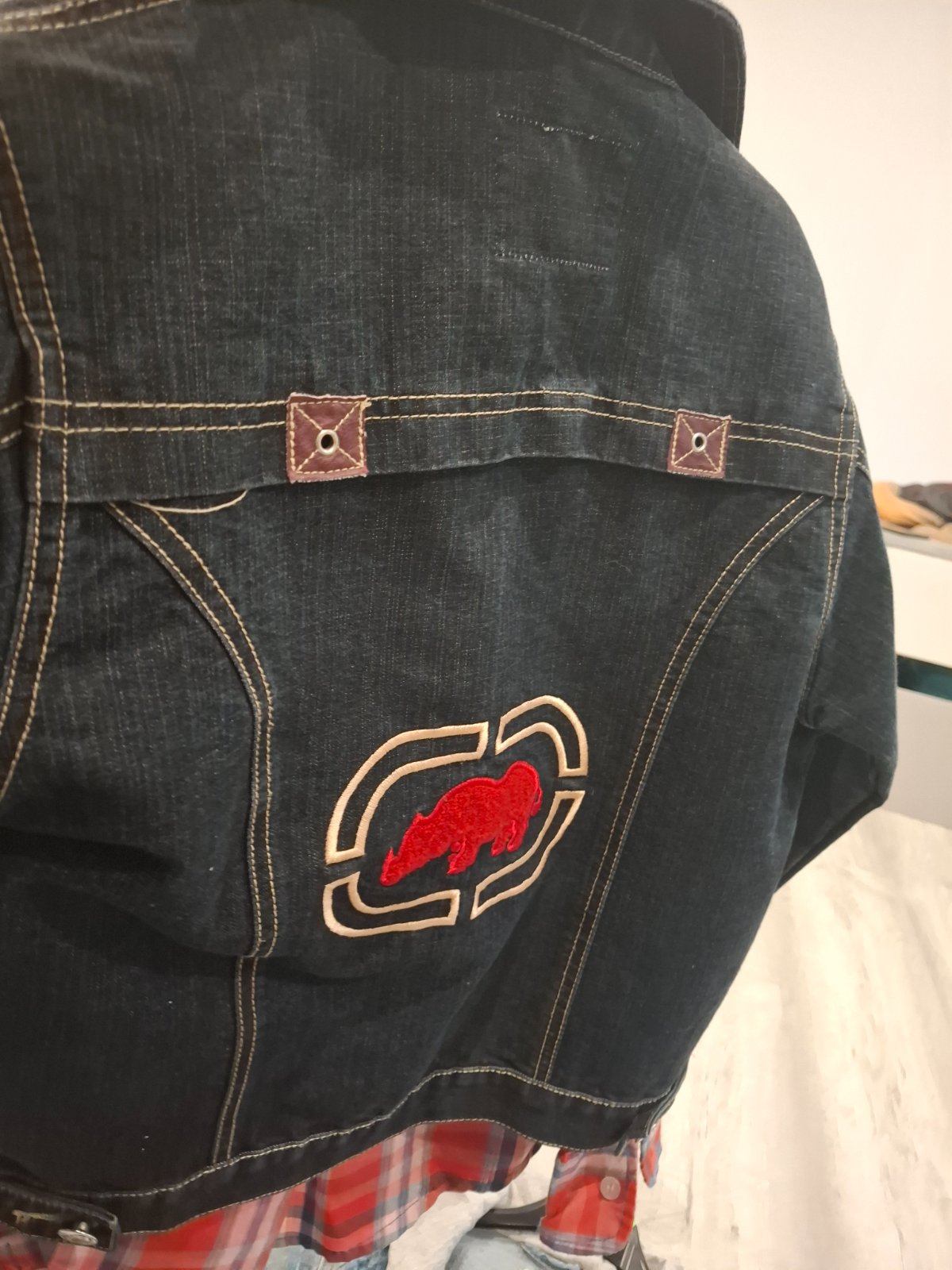 Na chrbáte vyšitý znak