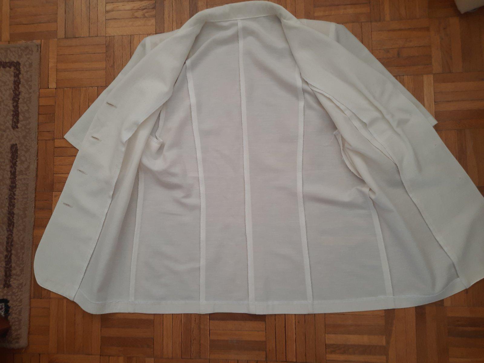 Predám dámske sako, nosené veľmi málo, len príležitostne. Veľkosť L, rozmery: rukáv od pleca 57cm, dĺžka 54cm, prsia 50cm, boky 49cm.
