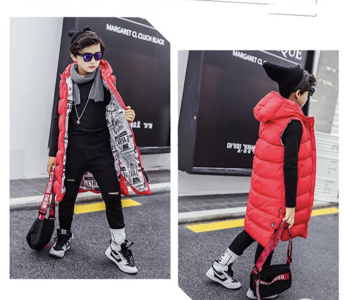 Dlha prešívaná tepla vesta s kapucnou