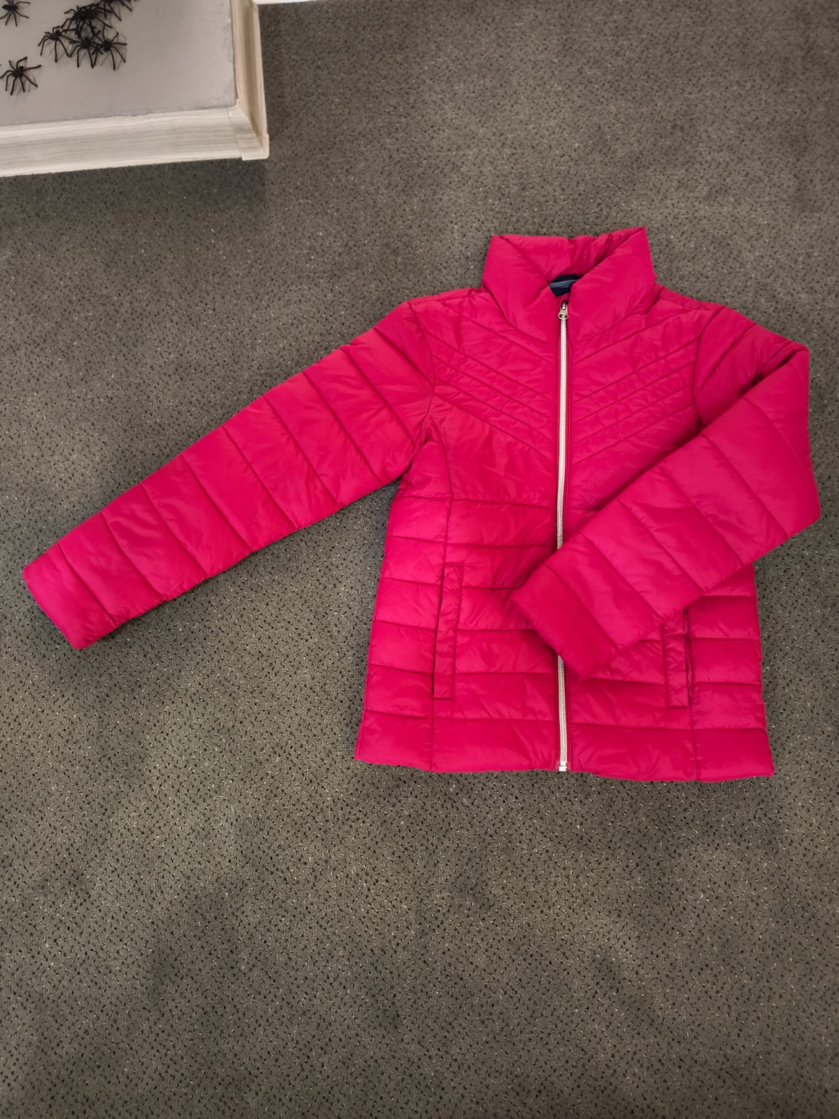 V dobrom stave, nosená krátko dcérou, jednu chybu som našla na zipse na kapucni. Veľkosť 134.