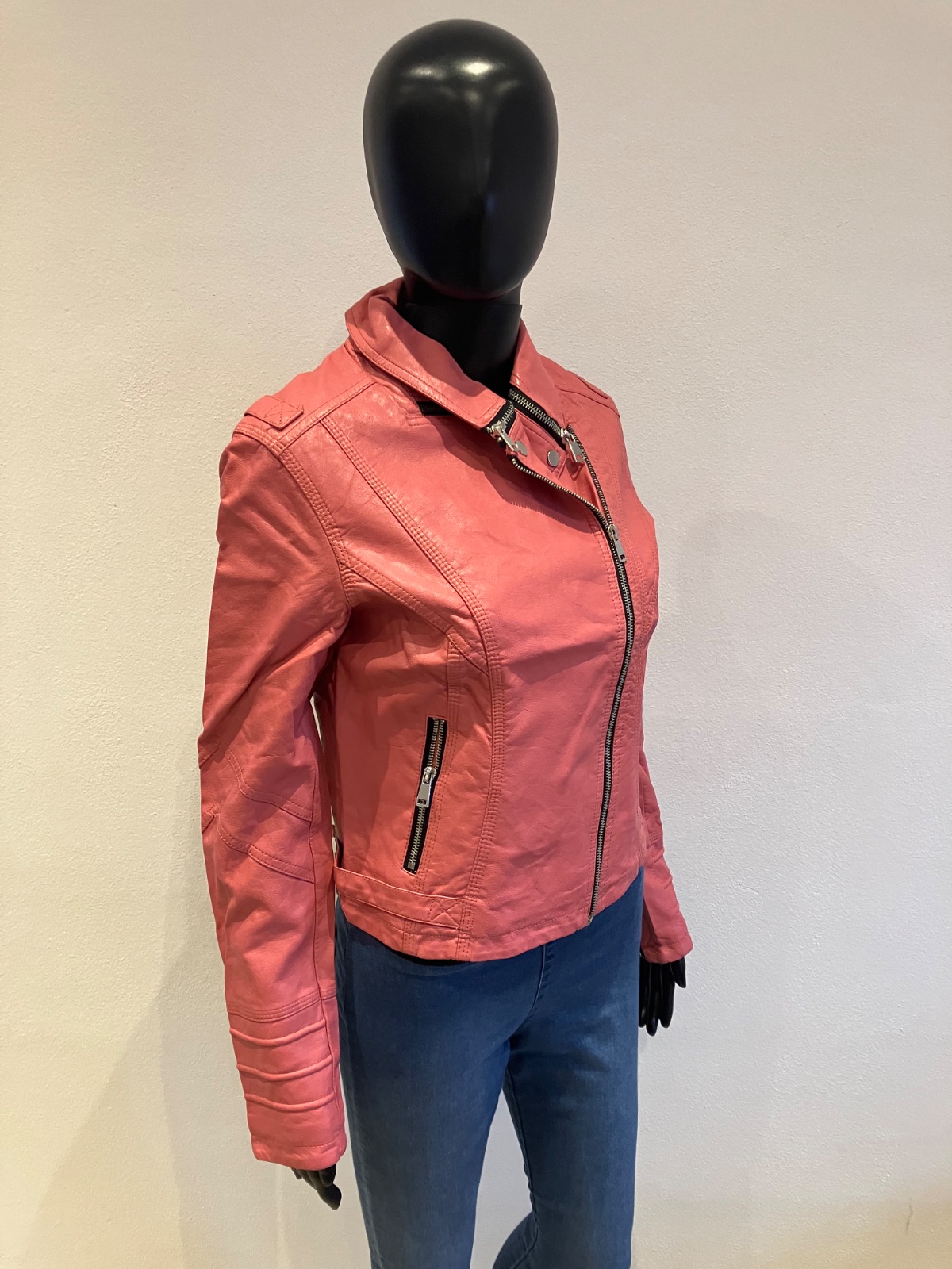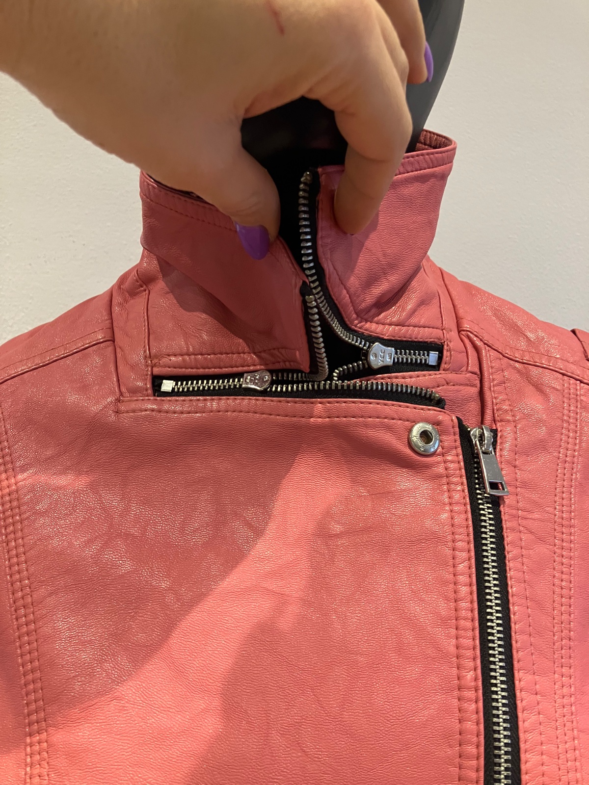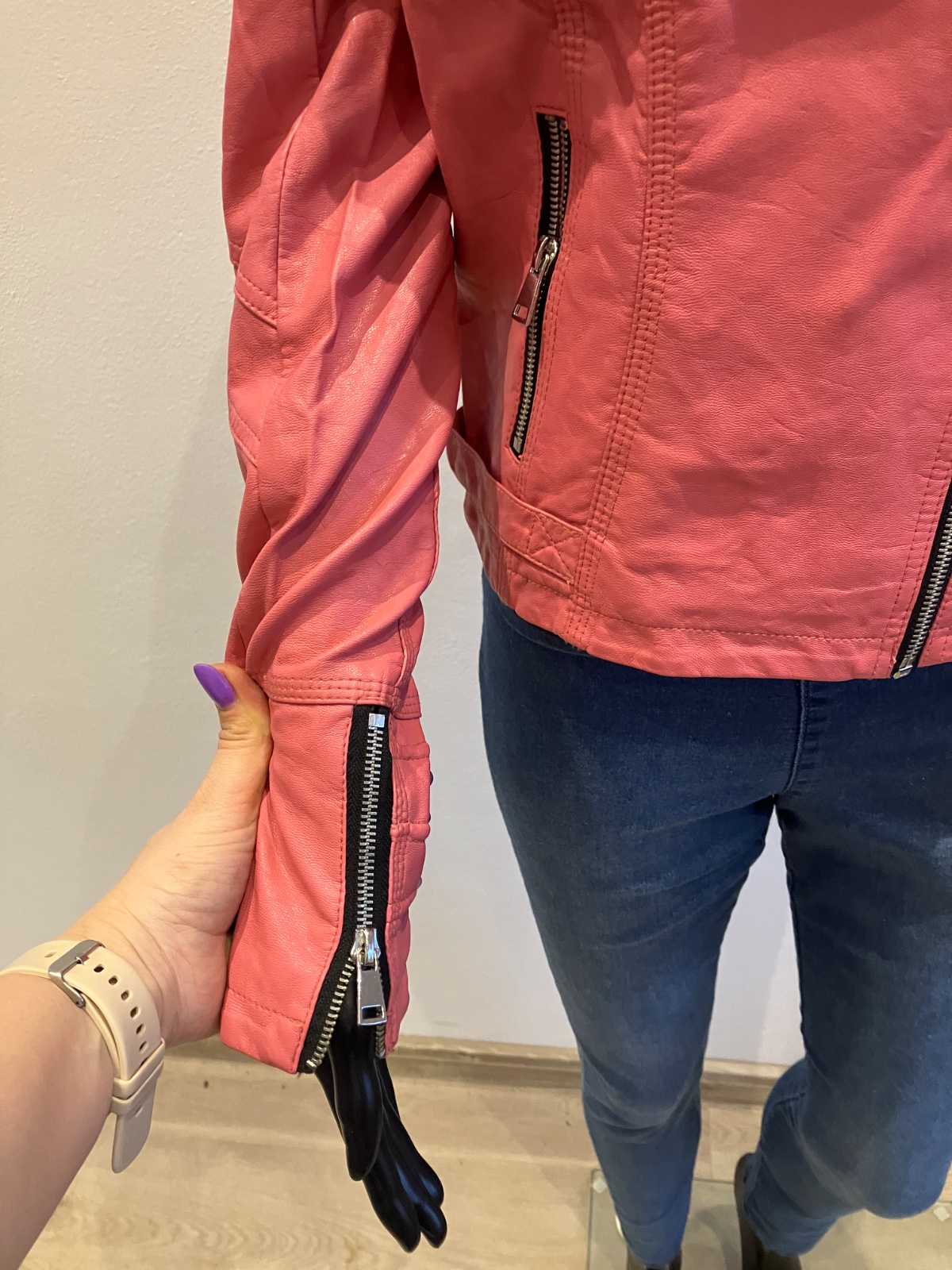 Dámsky koženkový kabát, zapínanie na zips, dve bočné vrecká.