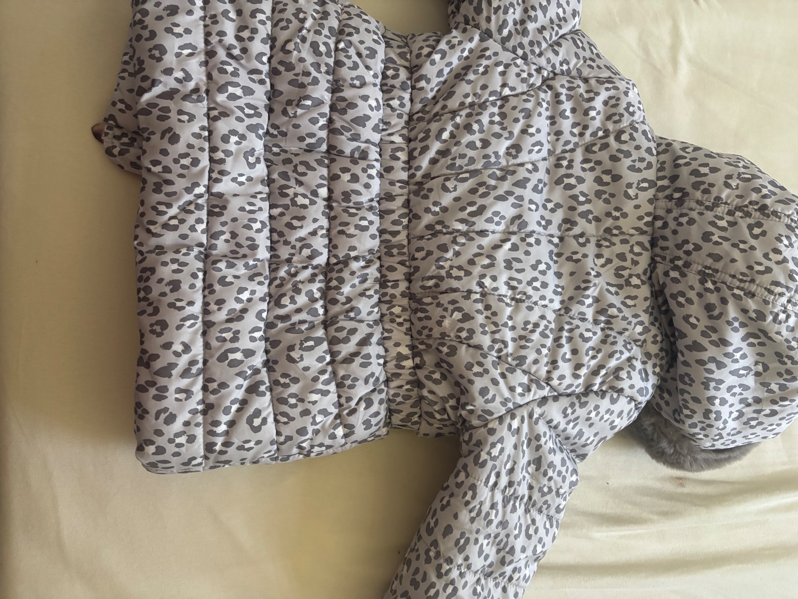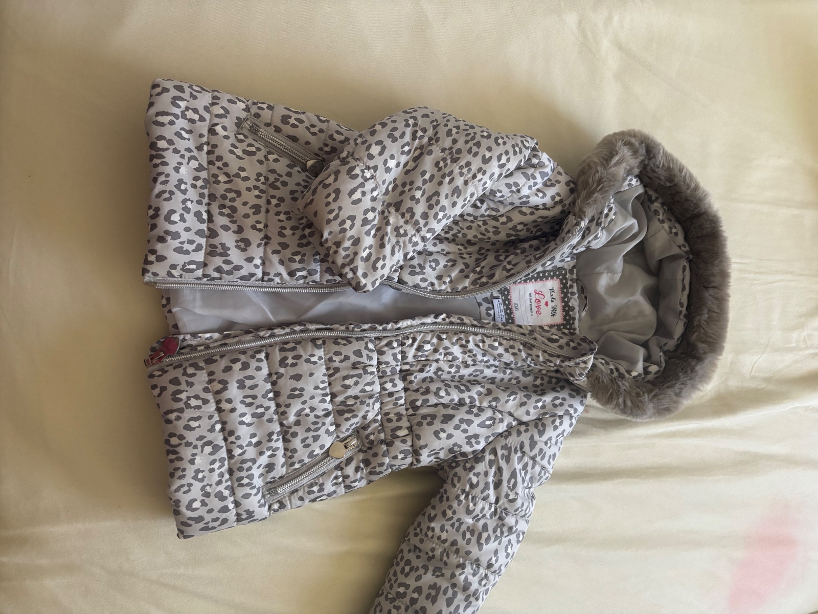 Prekrásny zimný kabát vo výbornom stave, teplá, ľahká, má len maličkú chybu: potiahnitú nitku na rukáve K dispozícii mám aj väčší rovnaký kabát vo veľkosti 116