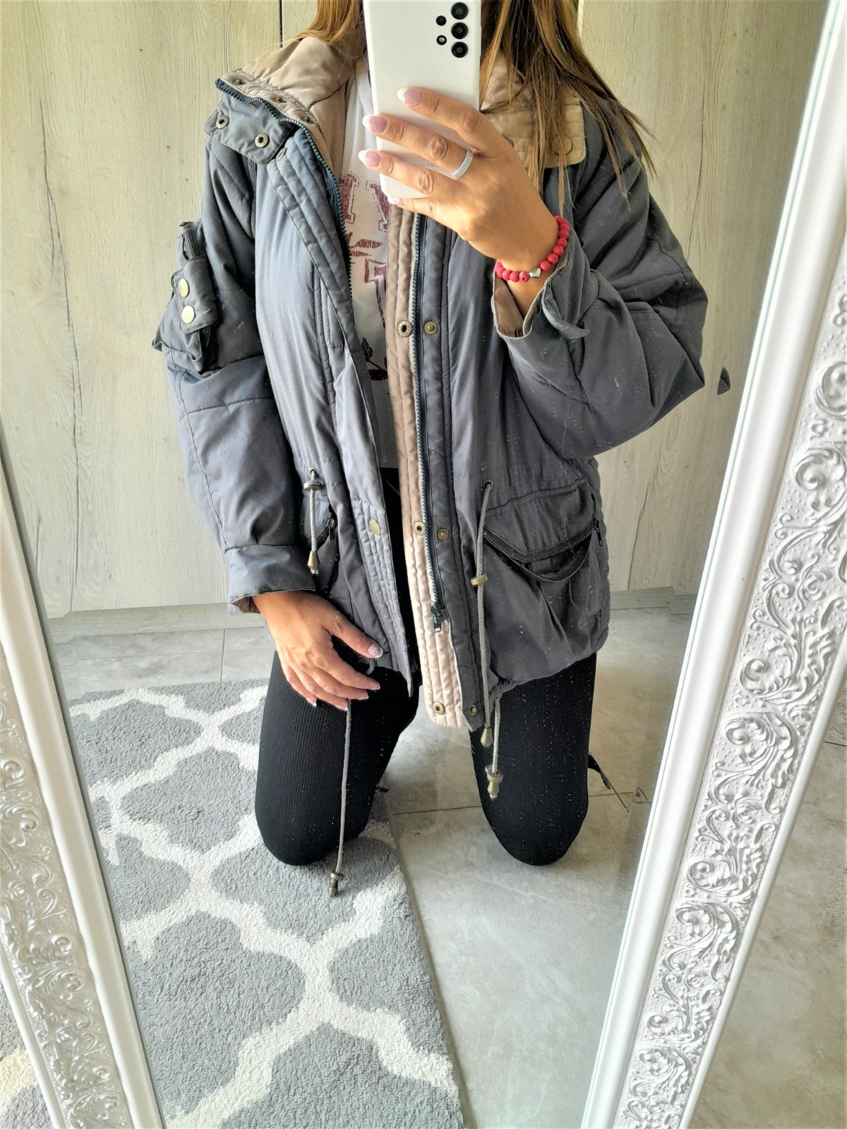 nosená unisex bunda-z jednej strany sivá-z druhej kávová,mala aj kapucňu,ale už nemá,rozmer-dĺžka 72cm,šírka pod pazuchami 2x57cm,rukáv od krku 70cm..kuk aj na iné moje inzeráty