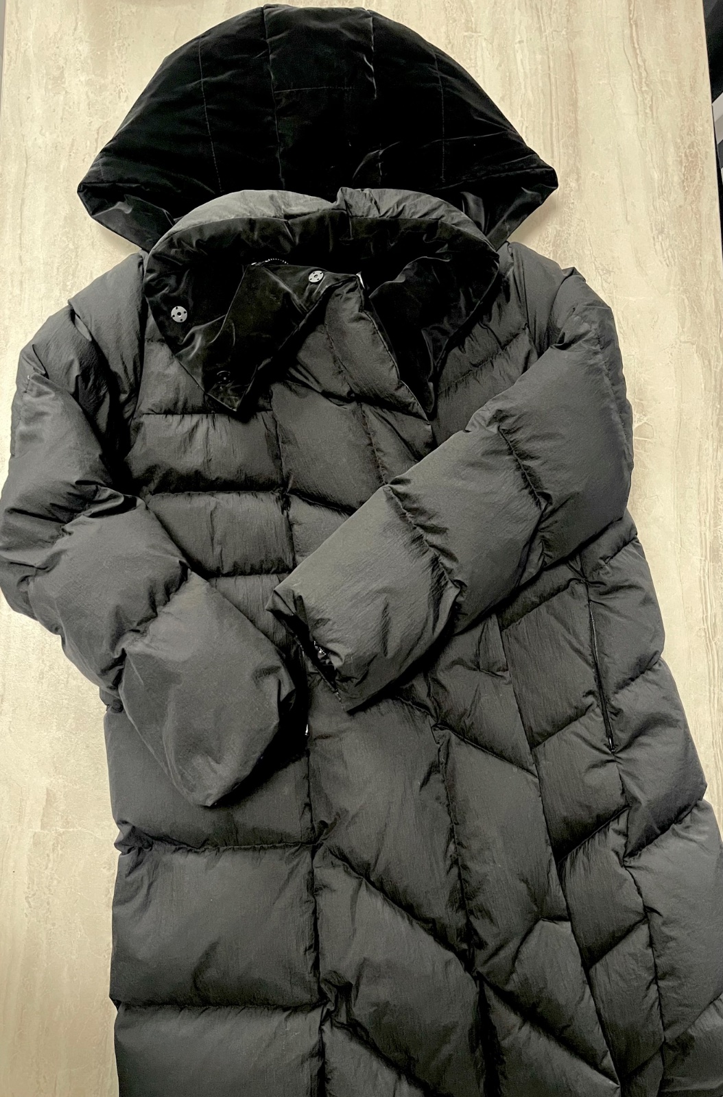 Emporio Armani luxusná damska obojstranná bunda. Tato bunda stojí original okolo 900€. Je detailne prepracovaná, ma nadčasový dizajn a padne takmer každému. Kupovaná bola minulú zimu, nosena max 10x, takze stav ako nova !!! Vrecka na zips, cierna farba, veľkosť 44 talianska oficialne Lko, ale Emporio línia je celkovo menšia, cize kľudne sadne aj na M. Dĺžka cca 100 cm, sirka na prsiach 50 cm. Velmi pekna akoby sametova odnímateľná kapucna.