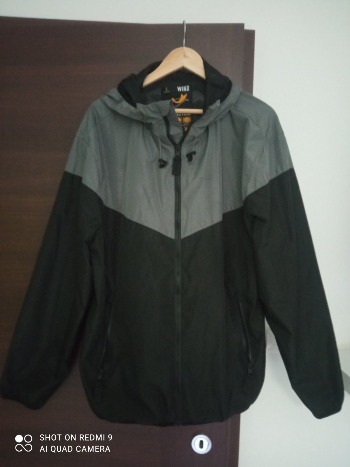 Pánska tenká bunda na jar alebo jeseň s kapucňou čiernej farby o veľkosti Xl. Má dve vrecká na zips. Vo výbornom stave, vhodná aj do školy.