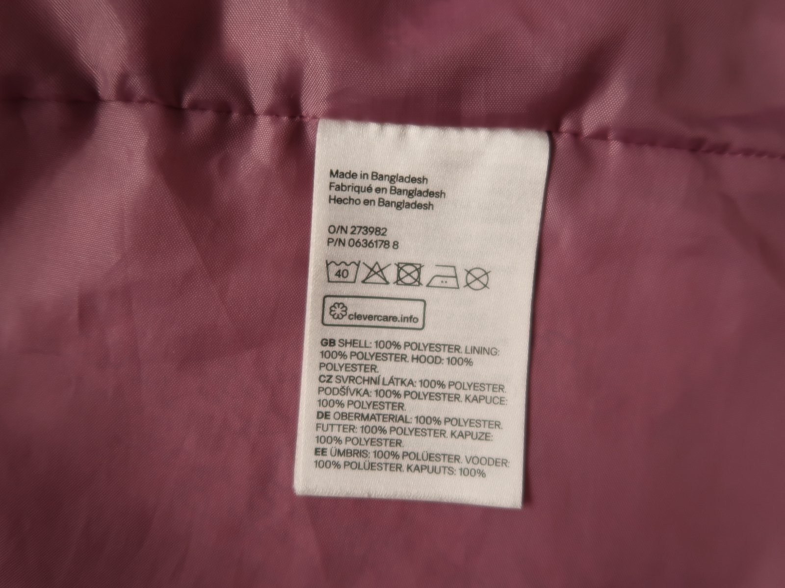 Bunda je zvnútra v mieste krku podšitá mäkkým ružovým fleesom.