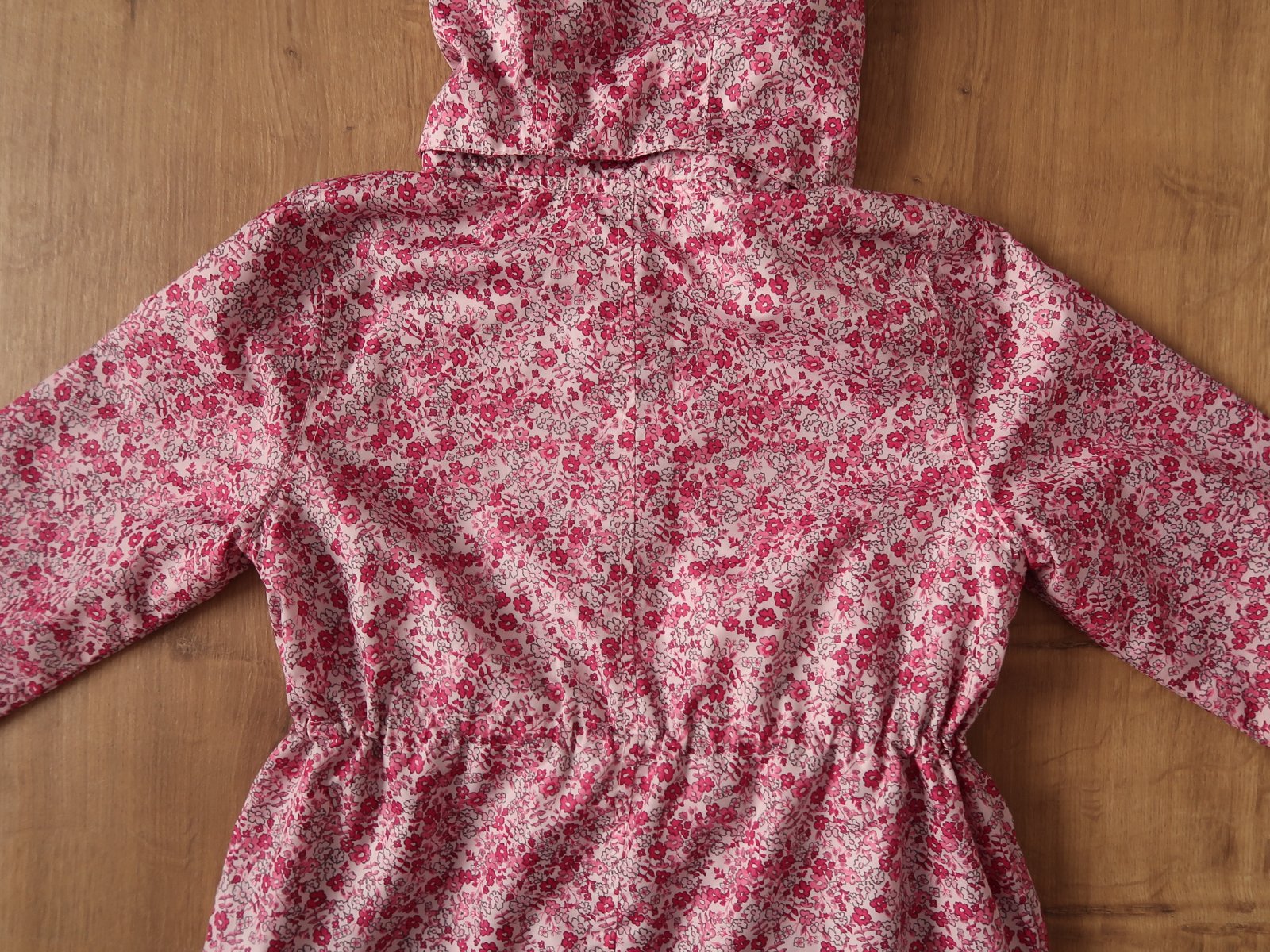 Je v páse zúžená nastaviteľnou šnúrkou, tým vyzerá ako milý dievčenský kabátik.