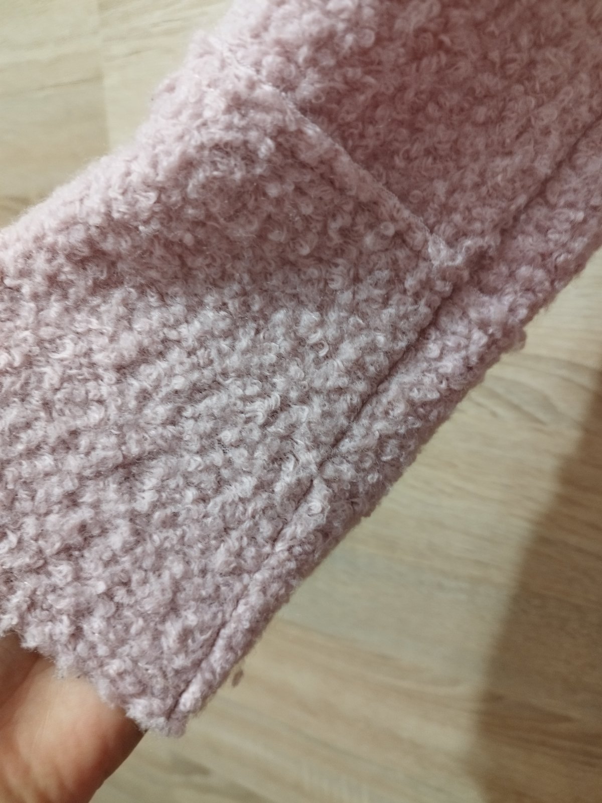 Veľmi pekné, bledoružové sáčko s dvomi bledoružovými gombíkmi, párkrát oblečené, celková dĺžka aj s vyrovnaným golierom 58cm, vzadu od goliera dole (bez goliera) 50cm, šírka cez plecia 36-37cm, mat...