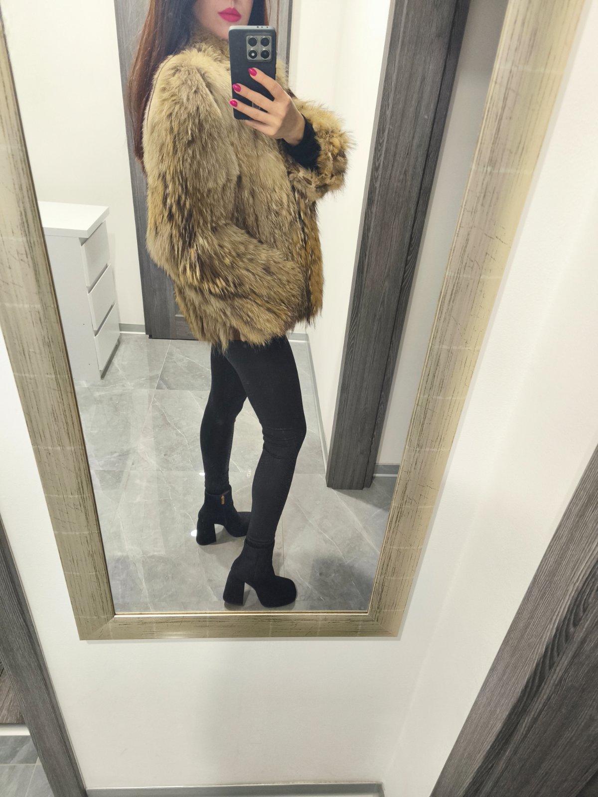Krasny pravy kozusok z myvala najlepsie sedi na velkost S zapina sa na kovove karabinky, da sa zapnut az ku krku je velmi teply. Noseny malicko na striedacku s vela inymi a skor len skaldovany. Naozaj krasny kusok odporucam. Jedina chybicka krasy je zvnutra na satenovej podsivke je nalicko zaprety co pri noseni vobec nie je vidiet upozornujem len na detail. Povodna cena bola velmi vysoka.