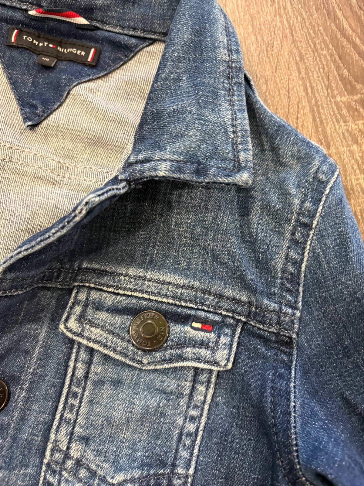 05.Tommy Hilfiger štylova riflova bunda vo velkosti 110,ako nova,dlzka je 38cm,dlzka rukava od krku je 45cm a sirka v podpazusi je od 33x2cm do 38x2cm
