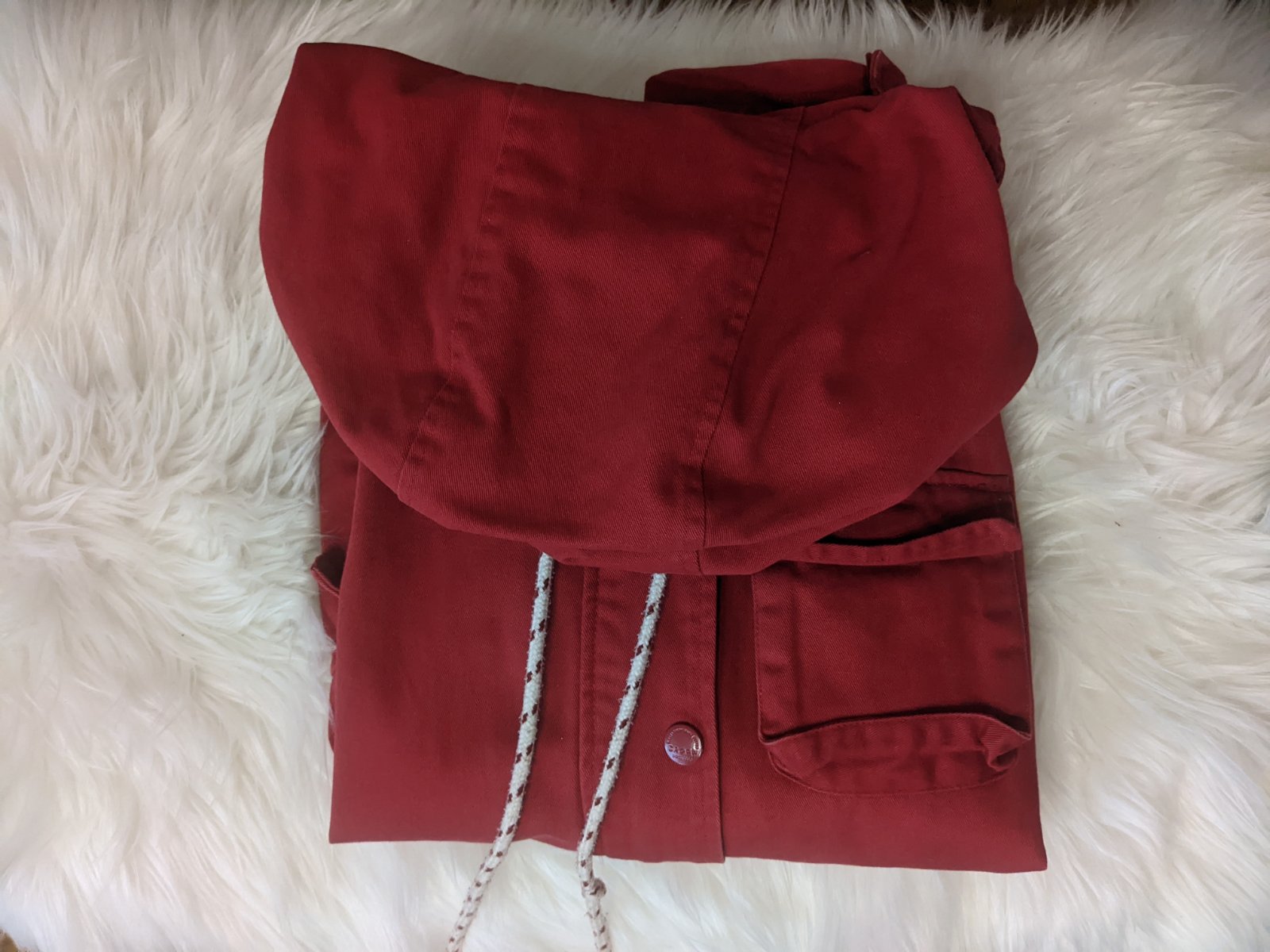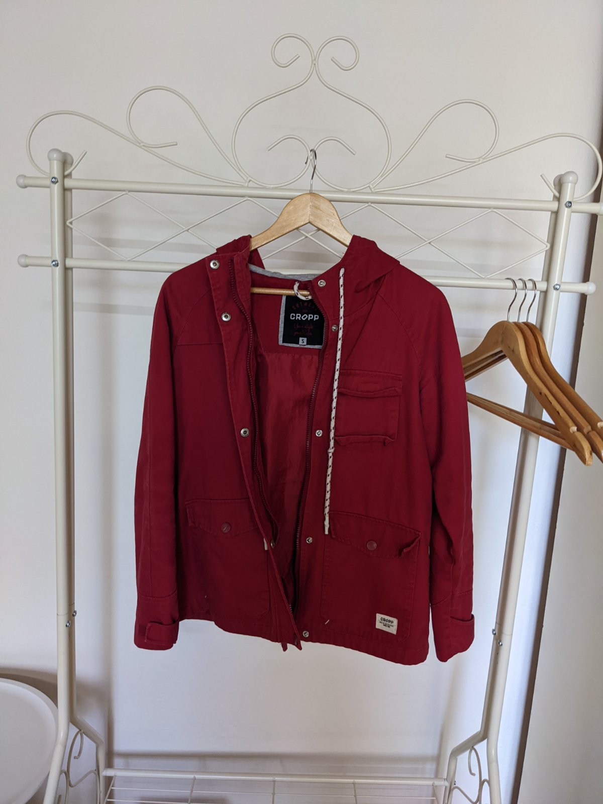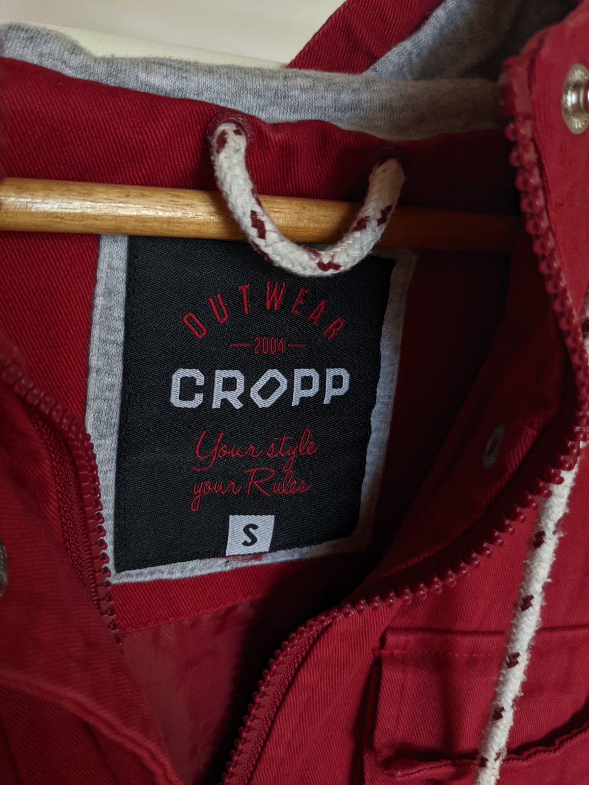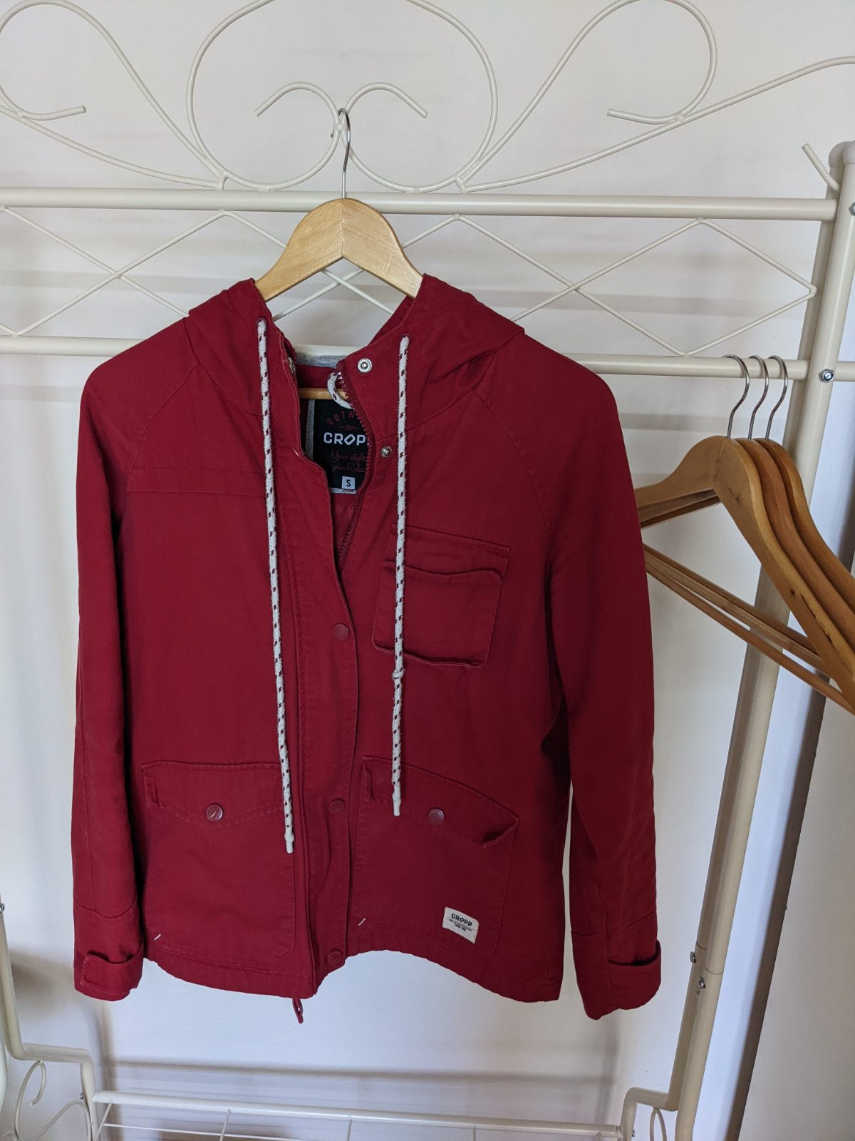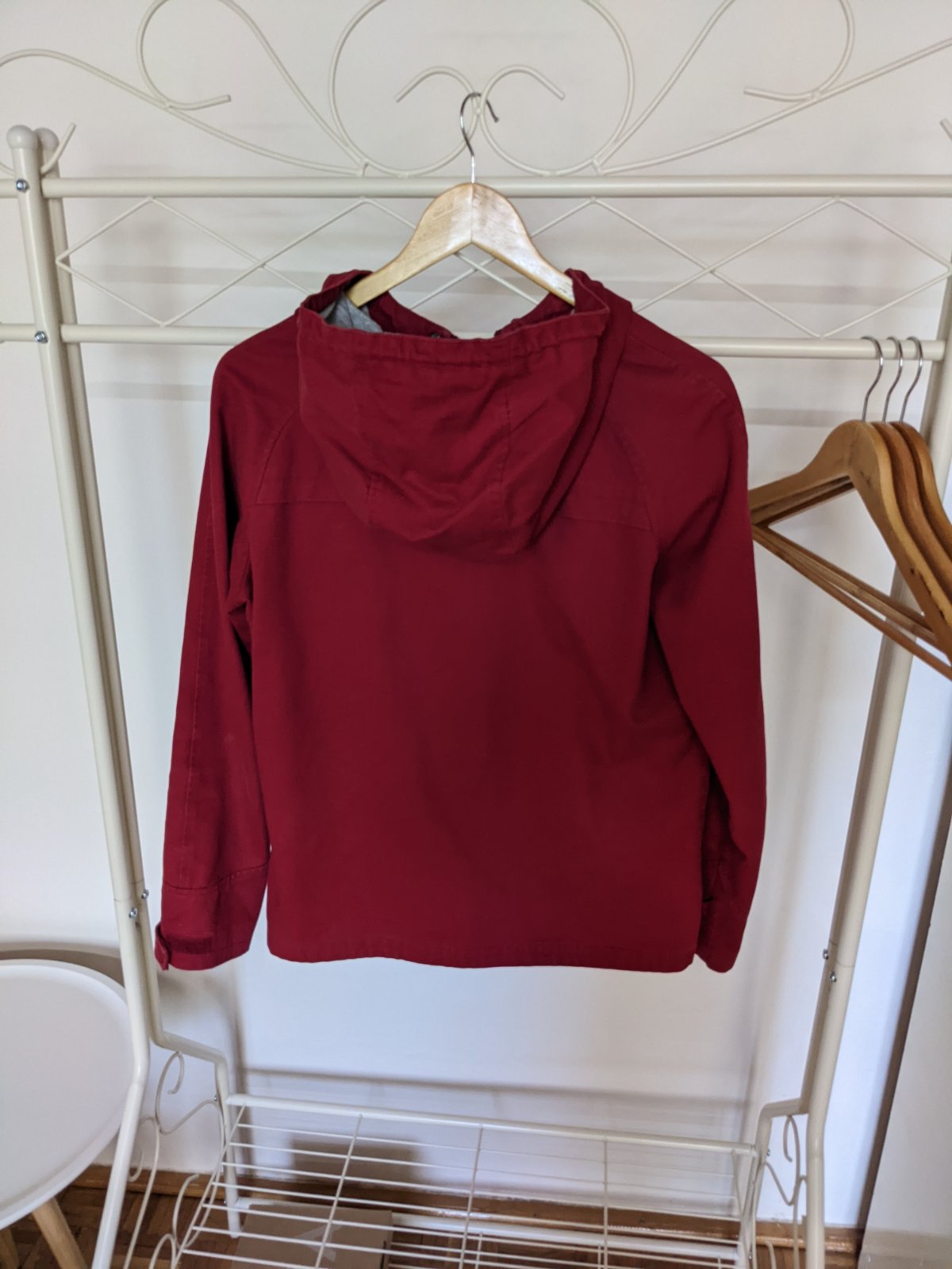 Nosená minimálne, farba je príjemná vínová nie ako na fotke sýta červená. Veľkosť S kľudne sedí aj na M. Kvalitný materiál, minimálne známky používania, pôvodná cena bola 25€.