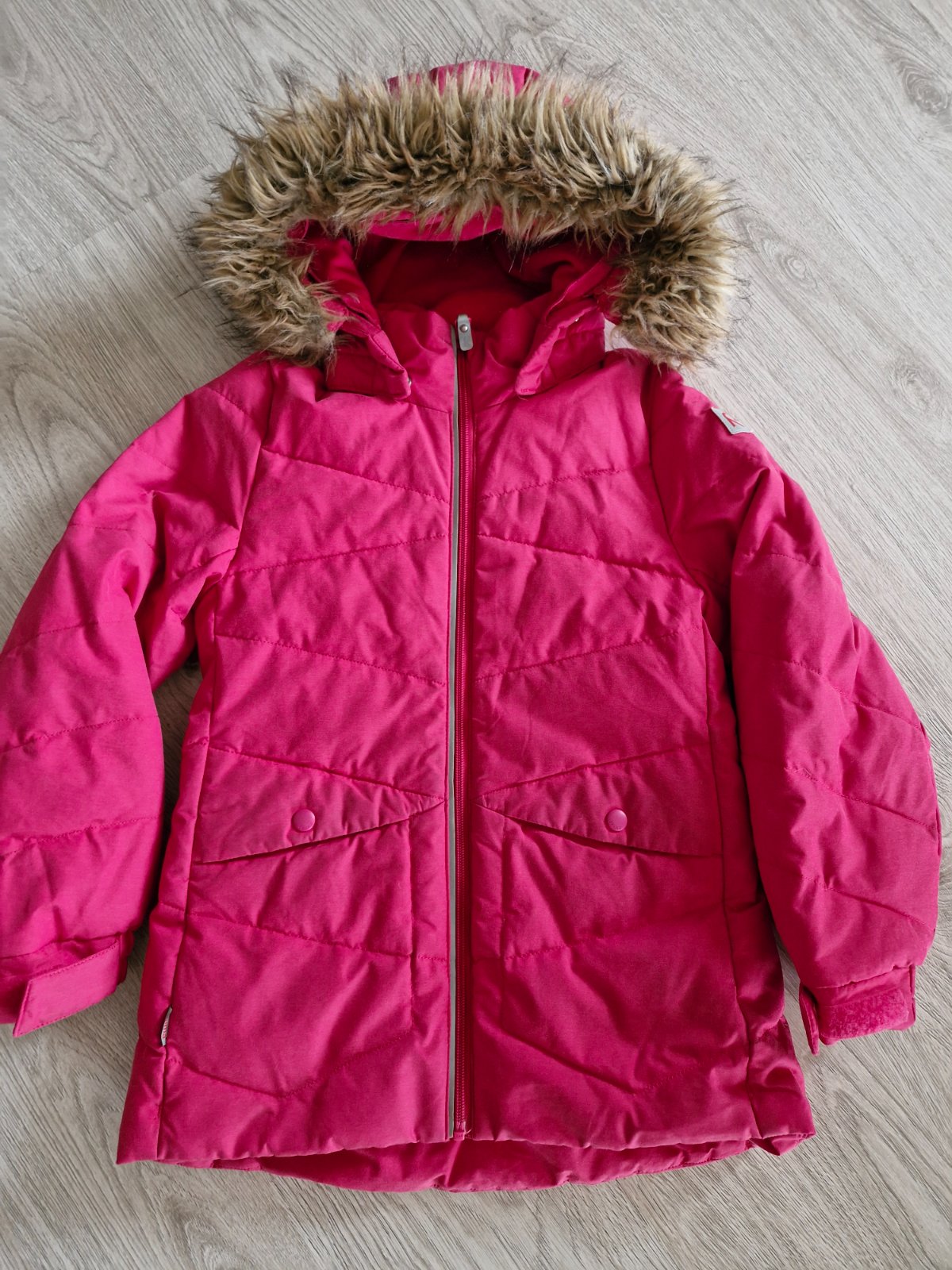 Krásna a kvalitná zimná bunda od Reima. Veľmi dobrý stav, na rukáve opravovaná dierka v profi krajčírstve a bez kapuce. Inak naozaj veľmi dobrý stav, teplučká. Sedí na 128 a 134. Suma max prisposob...