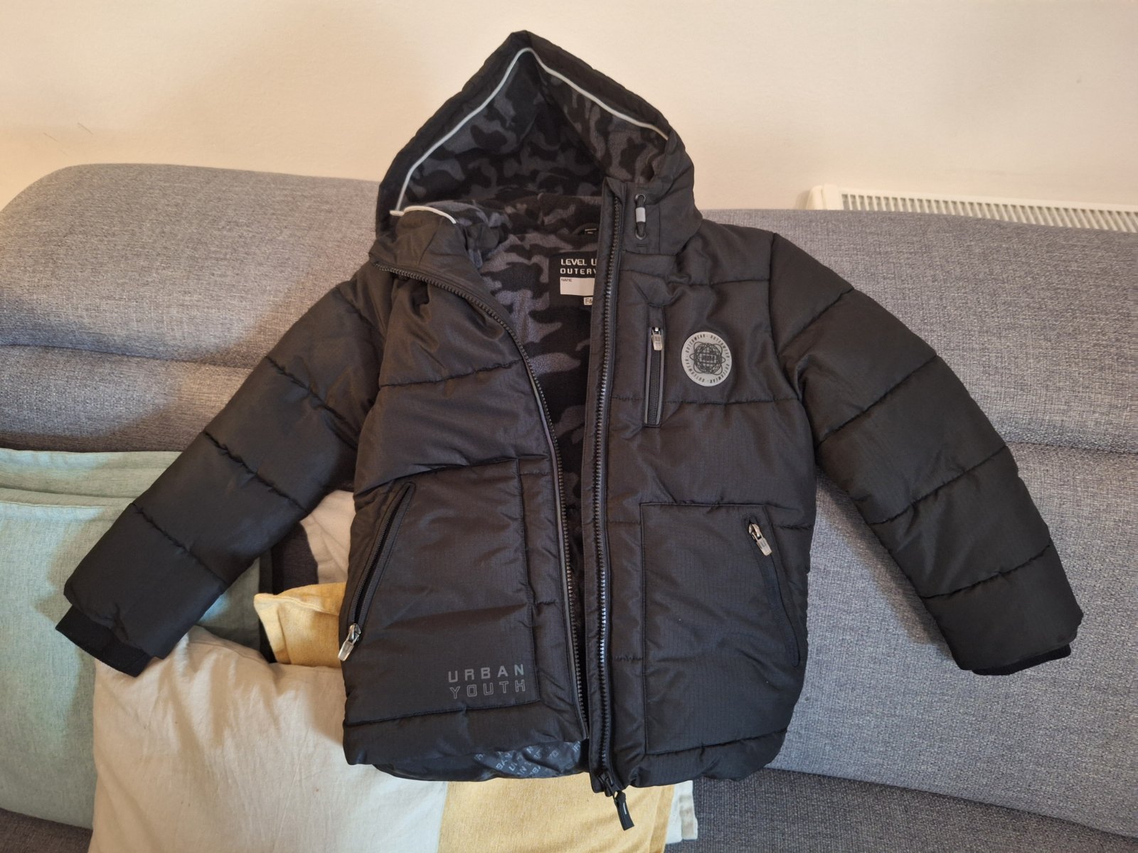 Predám kvalitnú bundu na zimu, strih do bokov. Bundička je hrubšia, vatovaná, doplnená jemným flísom vo vnútri na chrbtovej časti a na kapucni. Zvonka mäkký šuštiak, vodeodolný. Vrecká majú zipsy, rukávy majú patenty.