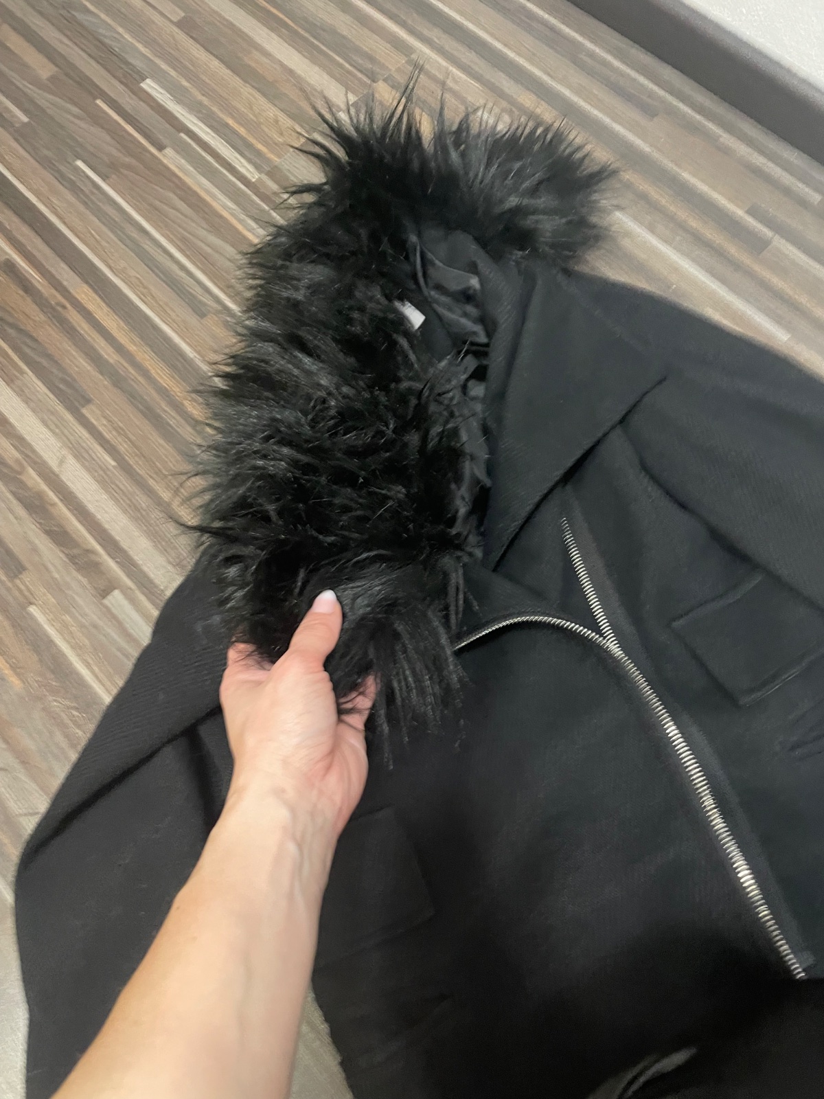 Krásny čierny kabát s kozusinkou